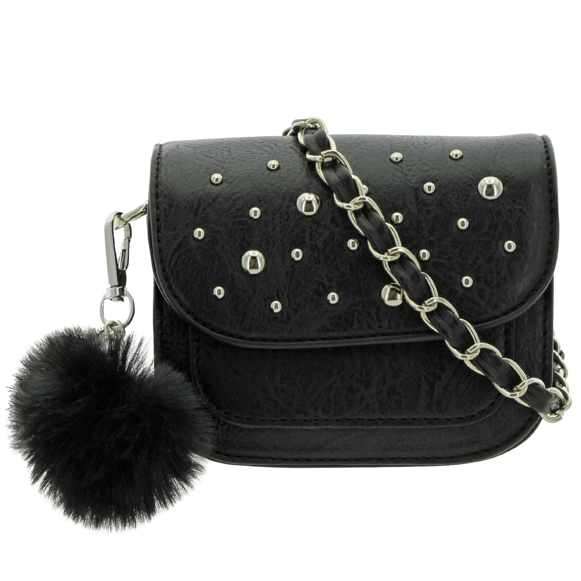 Add a touch of edgy style to your everyday look with the Sam & Hadley Mini Stud Handbag. This petite crossbody bag features eye-catching studded detailing across the front, giving it a bold yet versatile look that pairs effortlessly with both casual and dressy outfits. Designed for convenience and style, its compact silhouette keeps your essentials close while maintaining a sleek, lightweight feel. A removable clip-on bag charm keychain adds a fun decorative accent and can also be used separately for keys or other small accessories. Fashionable, functional, and easy to carry, the Sam & Hadley Mini Stud Handbag is the perfect go-to accessory for those who love compact bags with standout details. Shop SHOE SHOW MEGA today.