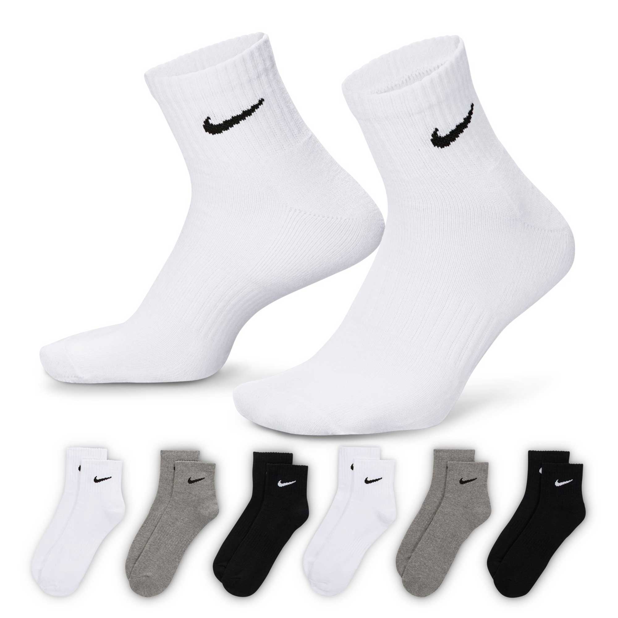 Power through your workout with the Nike Everyday Cushioned Socks. The thick terry sole gives you extra comfort for foot drills and lifts, while a ribbed arch band wraps your midfoot for a supportive feel.