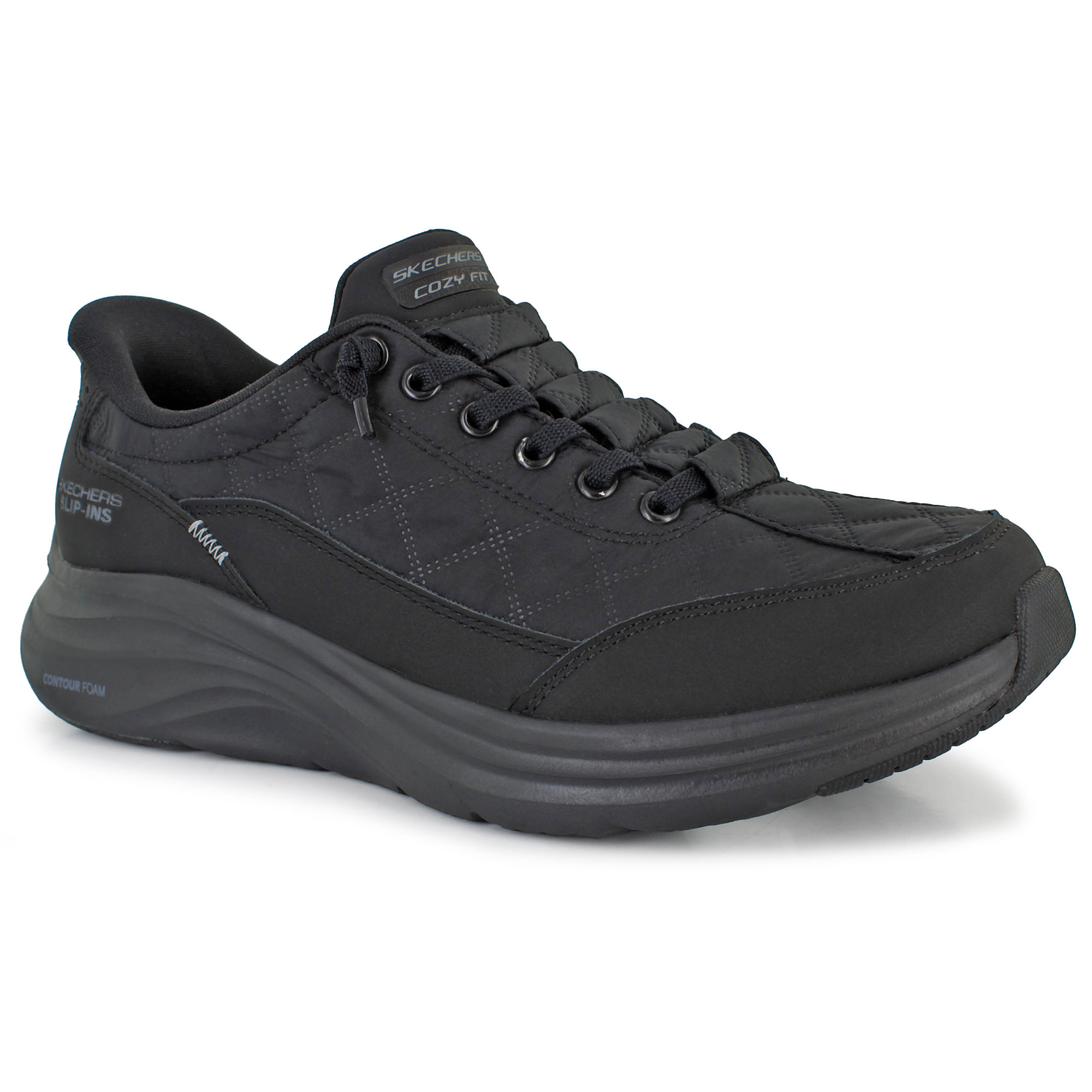 Step into a new level of comfort with Skechers Hands Free Slip-ins: Contour Foam - Cozy Fit. These slip-on sneakers feature a Heel Pillow that securely holds your foot in place, along with a quilted Cozy Fit upper and tied-off stretch laces. The shoe provides exceptional cushioning from its Contour Foam midsole that adapts to the unique shape of your foot, and a Skechers Air-Cooled Memory Foam insole for a soft, breathable feel.
