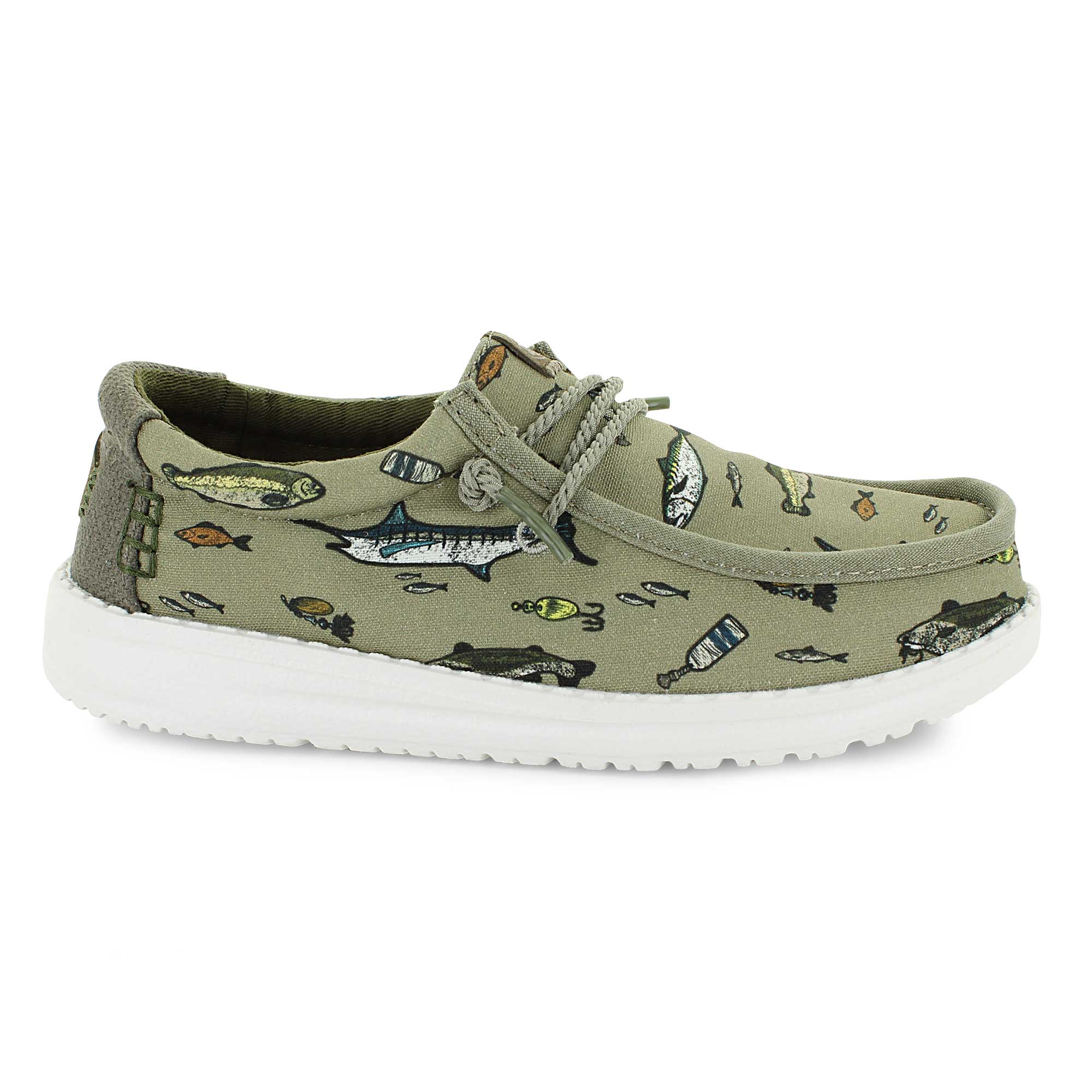 Relax and let your feet choose the path. These comfy and lightweight HEYDUDE slip-on sneakers are a laid-back way to enjoy fashion without pain. A summertime fish pattern makes these great for lazy days at the river or just hanging out with friends in casual style. Available now at SHOE SHOW MEGA.