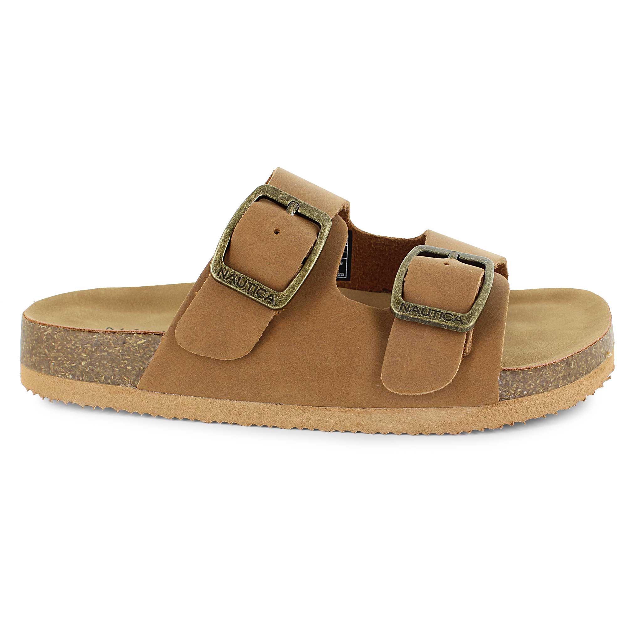 These classic Nautica footbed sandals offer a timeless look for every warm-weather outing. Featuring two adjustable buckle straps, the easy slip-on design provides a customized fit that's ready for all-day adventures. Whether paired with casual denim or shorts, these versatile sandals are the ultimate staple for effortless summer style.