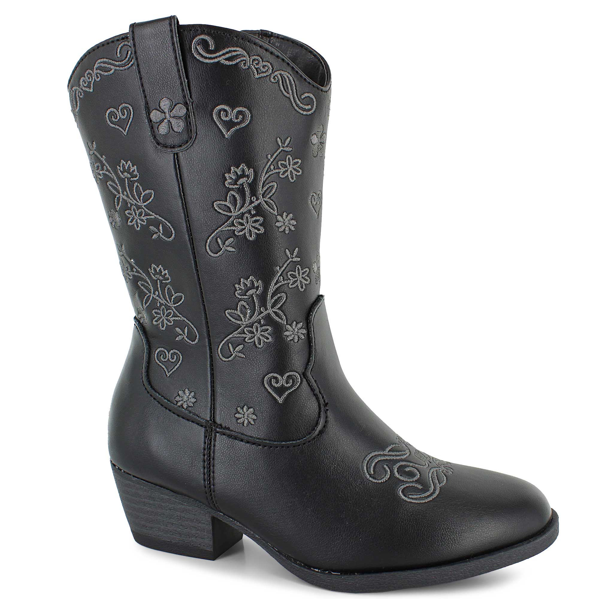 These stylish western Jellypop boots turn up the charm with delicate floral and heart embroidery, giving a playful nod to classic cowboy flair. The sturdy block heel adds just the right amount of height and support for adventures, while the side zipper ensures getting in and out is quick and fuss-free.