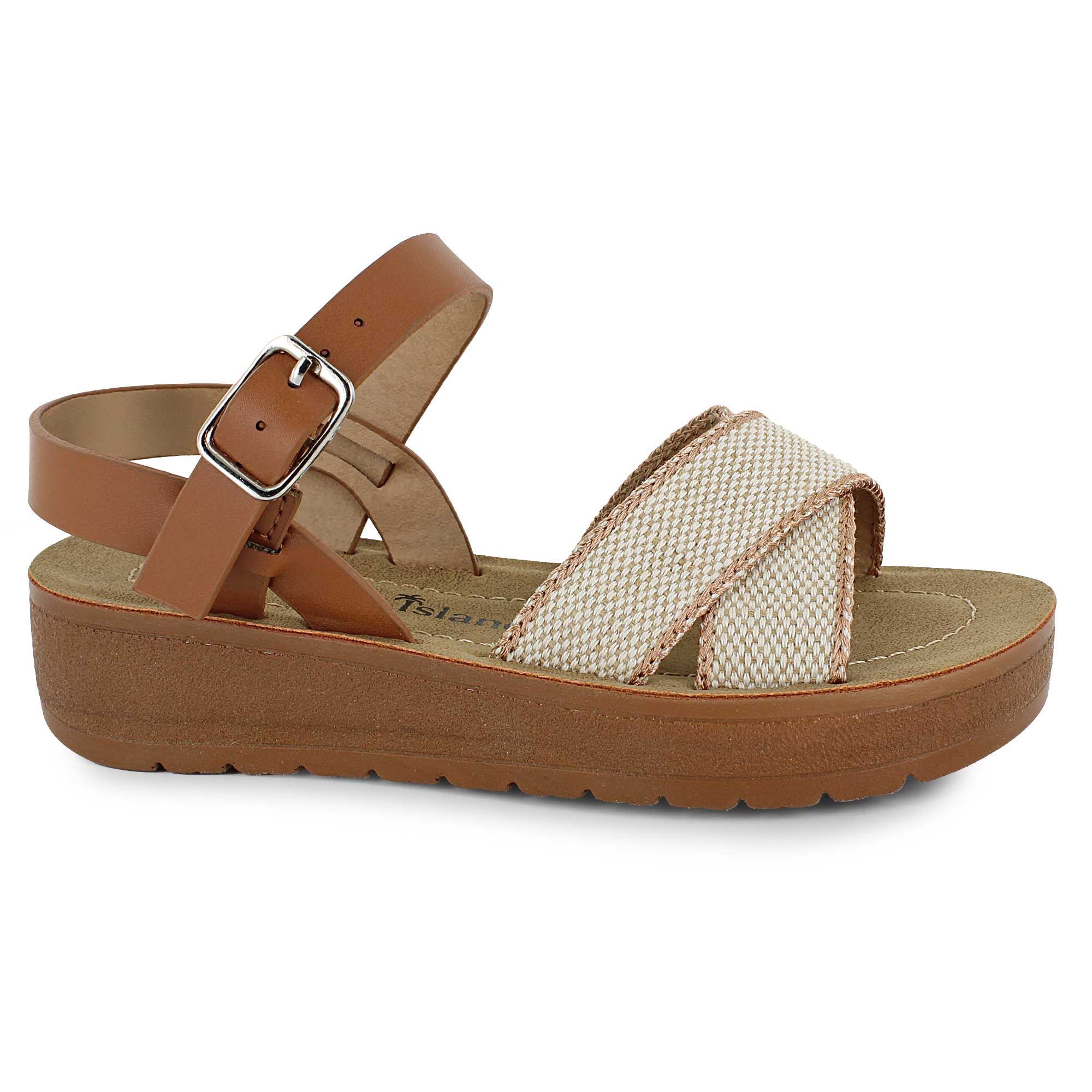 This trendy Aloha Island sandal combines easy style with all-day comfort. Woven straps and a secure heel strap with buckle closure create a polished, supportive fit. A lightweight platform midsole adds height without the heavy feel, perfect for warm-weather wear.