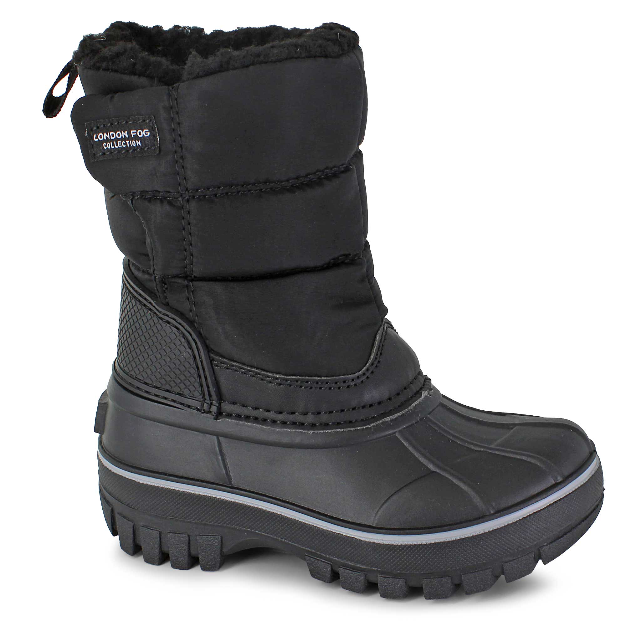 Ensure they stay cozy this winter with weather-ready boots by London Fog. Faux-fur trim and insulation, plus a tab closure provide warmth and security from the elements. With a water-resistant shell outsole, these boots keep feet dry and prepared for any weather.
