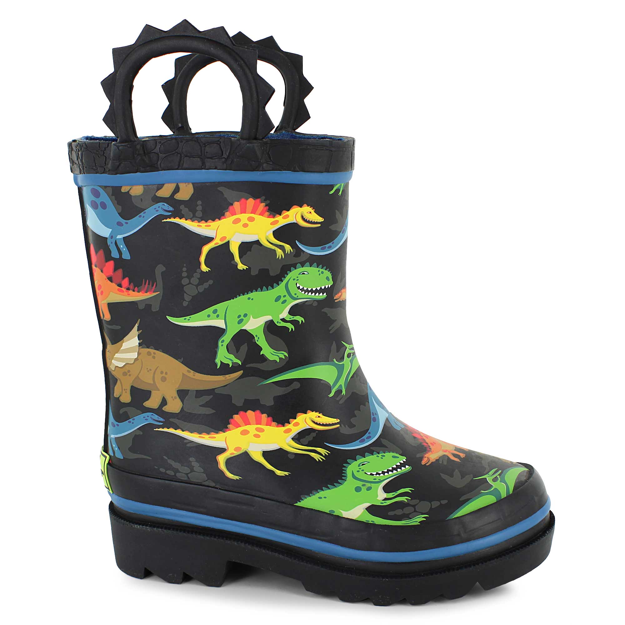 Keep dry with playful Dino-themed rain boots by Western Chief. These waterproof shoes feature a colorful upper, padded footbed and flexible outsole. Splash around in the park or wear them on rainy walks to school Available now at SHOE SHOW MEGA.