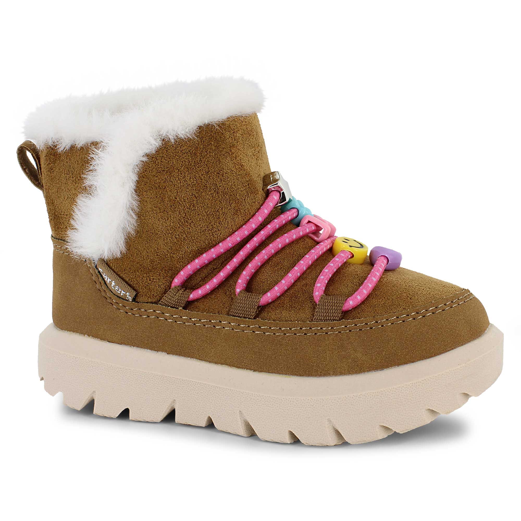 These toddler boots stand out with colorful elastic laces and playful tied-on charms. A soft faux-fur trim and lining keep little feet warm and cozy. The pull-on design and lightweight, flexible sole make getting out the door easy and comfortable.