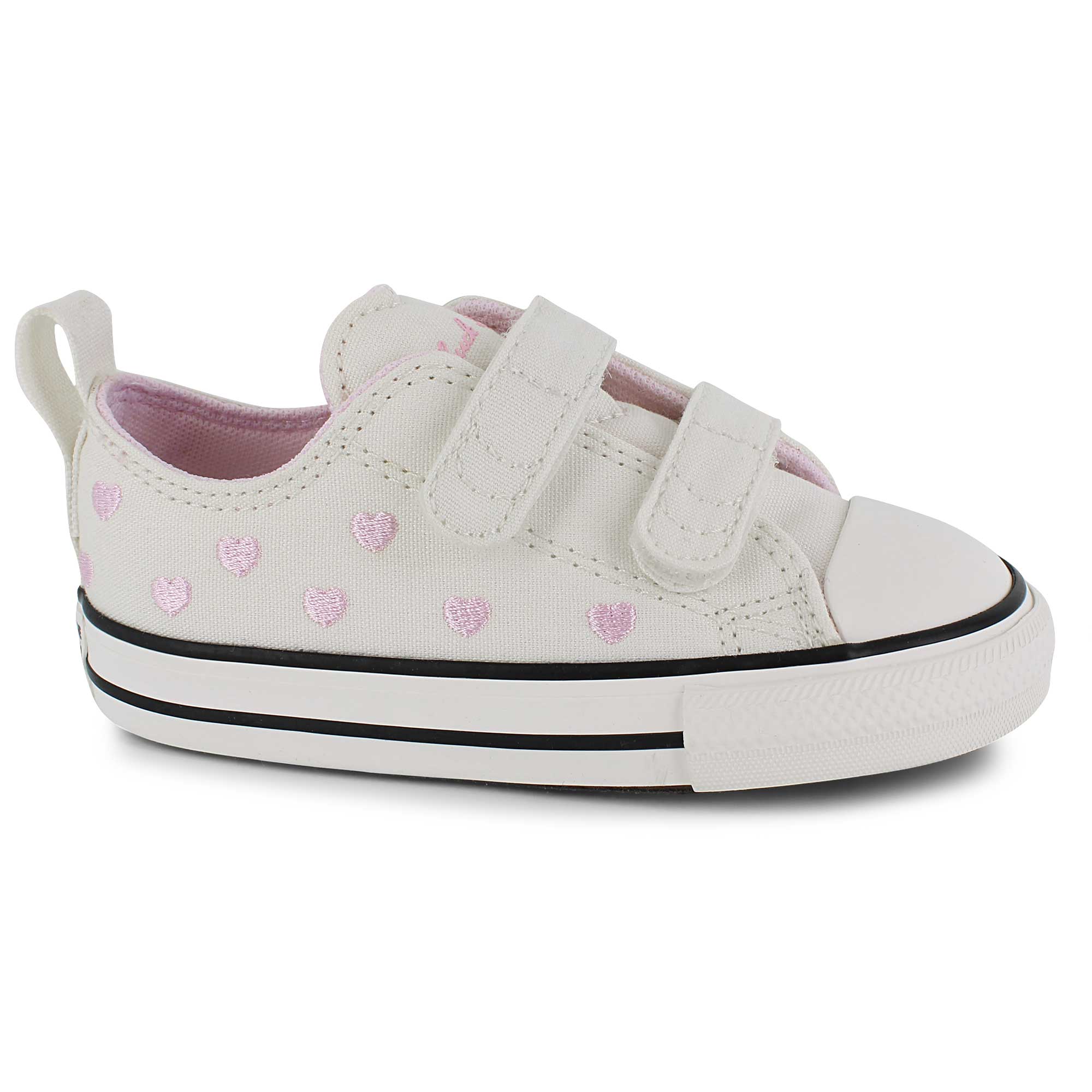 Classic Converse low-top Chucks offer little ones all-day comfort and style. With cute embroidered heart patterns and easy-on access, these sneakers are perfect for everything from playtime at school to weekend fun. Dress them up or down with jeans, leggings, skirts, and more for an effortlessly cool look.