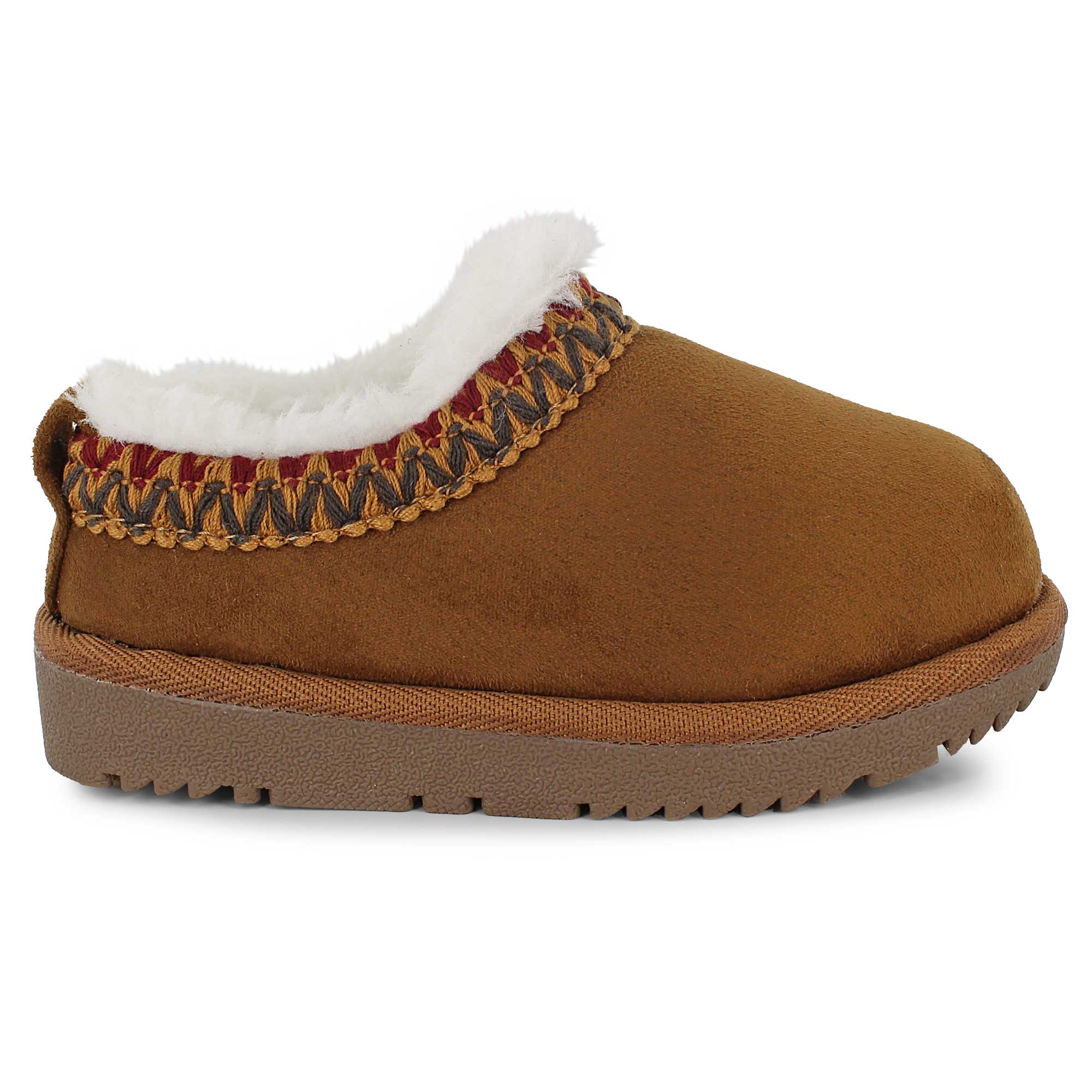 These stylish slip-ons wrap their feet in cozy faux-fur comfort while keeping their outfit on-trend. The collars stitched accents bring a fun, fashion-forward touch. A smooth, durable flat outsole completes the seasonal look. Available now at SHOE SHOW MEGA.