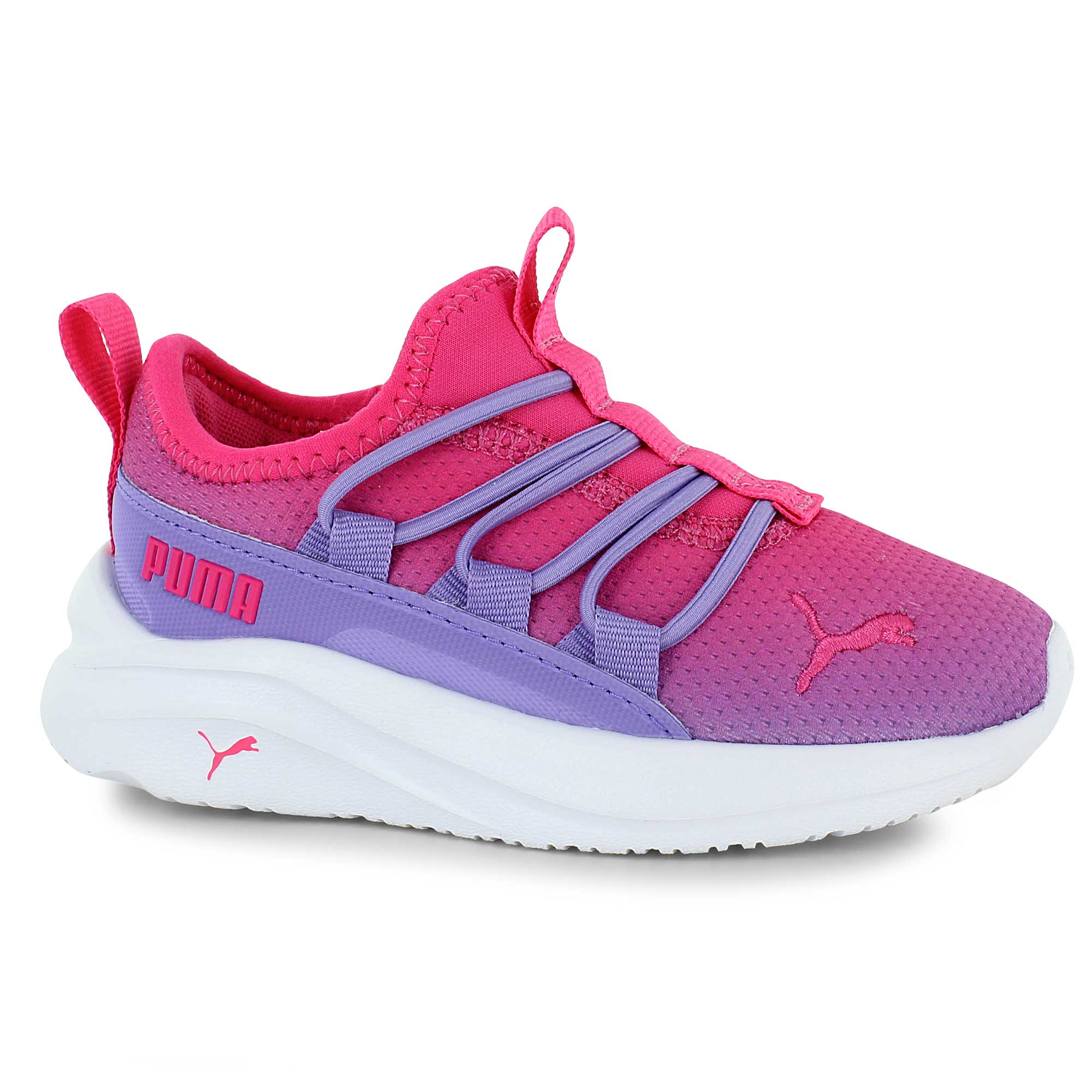 This sporty Puma running shoe offers the perfect combination of comfort, lightweight design and style. The mesh upper is breathable and supportive, while the padded heel and cushioned footbed ensures a comfortable fit. Elastic laces make for easy on and off, allowing them to get ready for the day in no time.