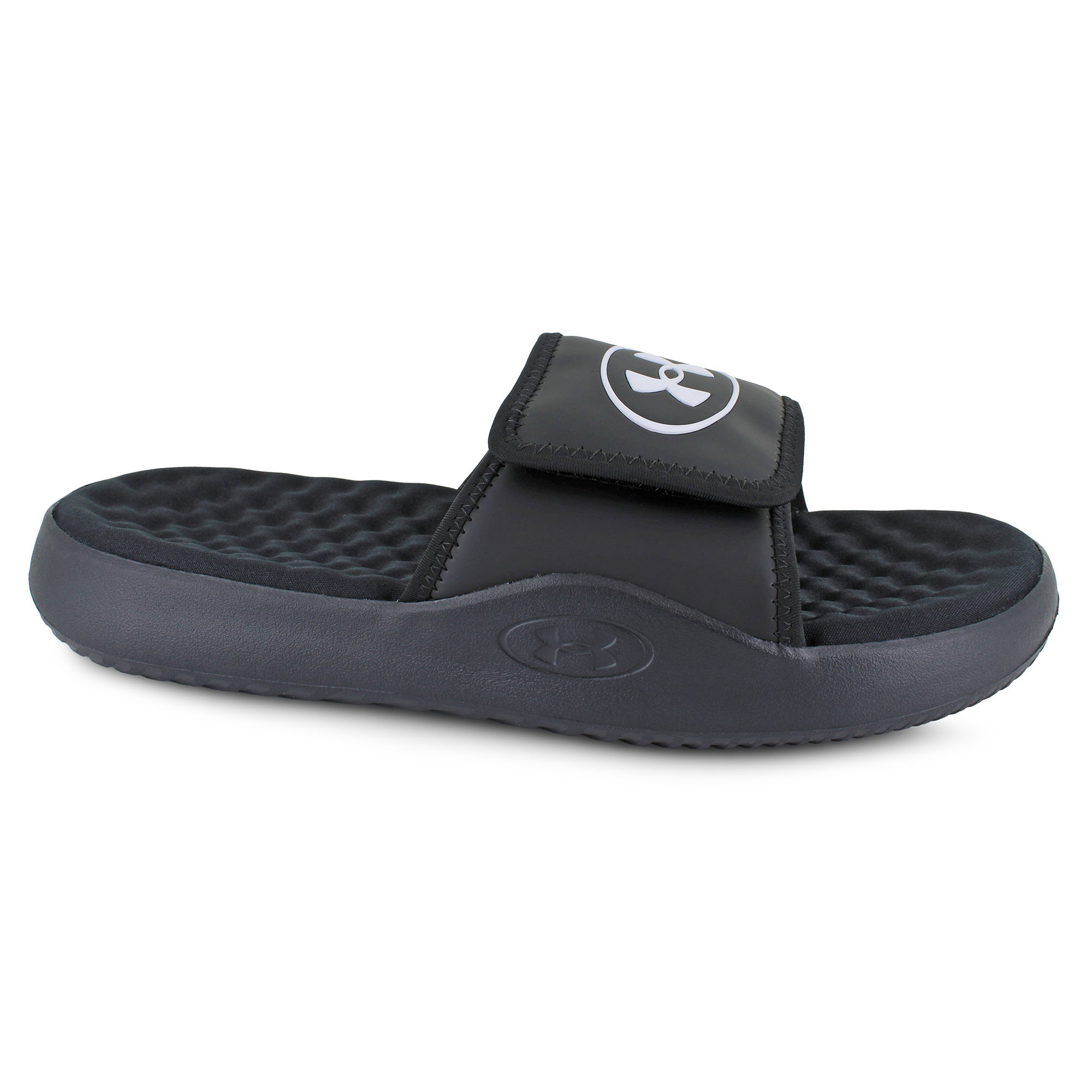 The Under Armour Ignite Pro 8 is ready to refresh your style in plush comfort. An adjustable matte-finish strap provides an adaptable fit, while raised sidewalls and height add stability and comfort to every stride. With a contoured memory foam footbed that allows for extra cushioning while running errands, cooling off after a game, or lounging around the pool, it has never been easier.