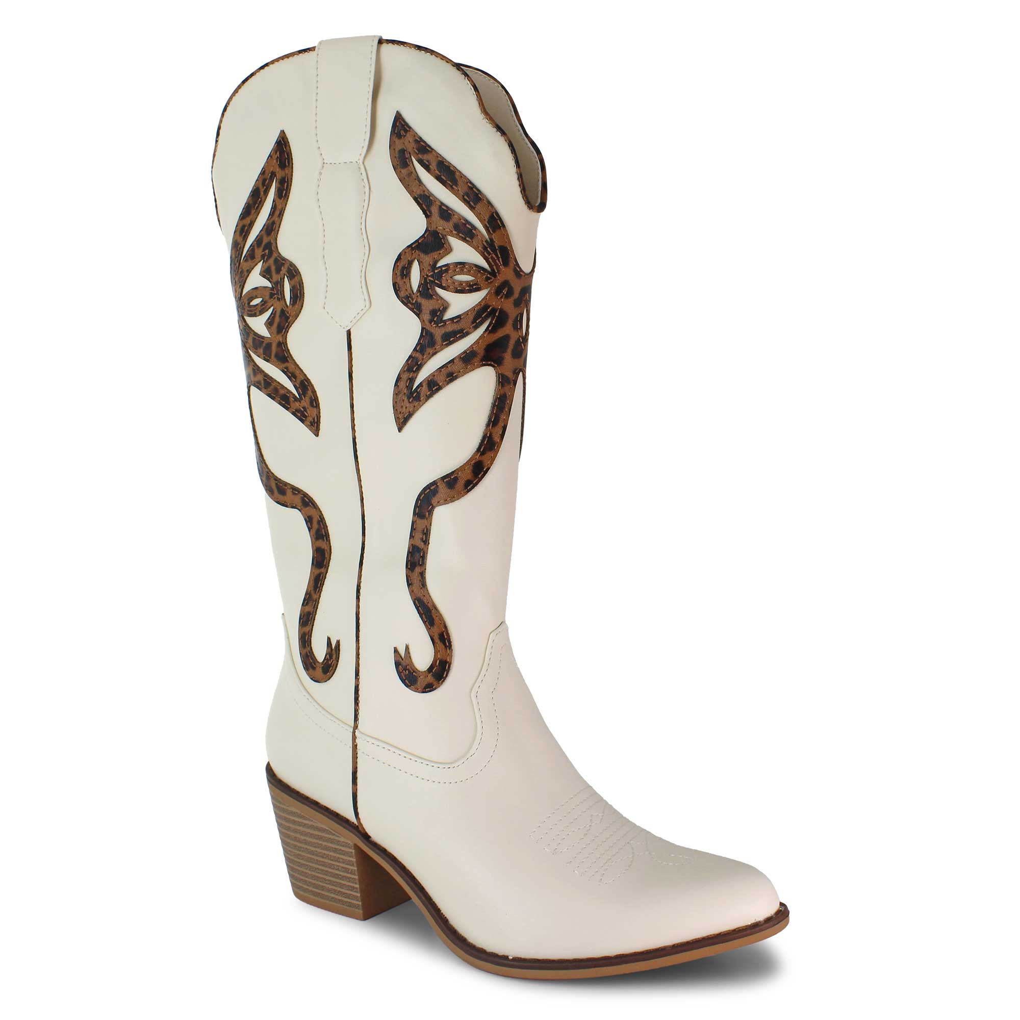 Step into fierce, western flair in the Pierre Dumas Whitney boot. Featuring leopard print details and western-inspired stitching for a bold take on a classic look. A block heel and pointed toe completes the silhouette on this boot that is sure to turn heads, whether you're headed for a night out or just adding some spice to your look.