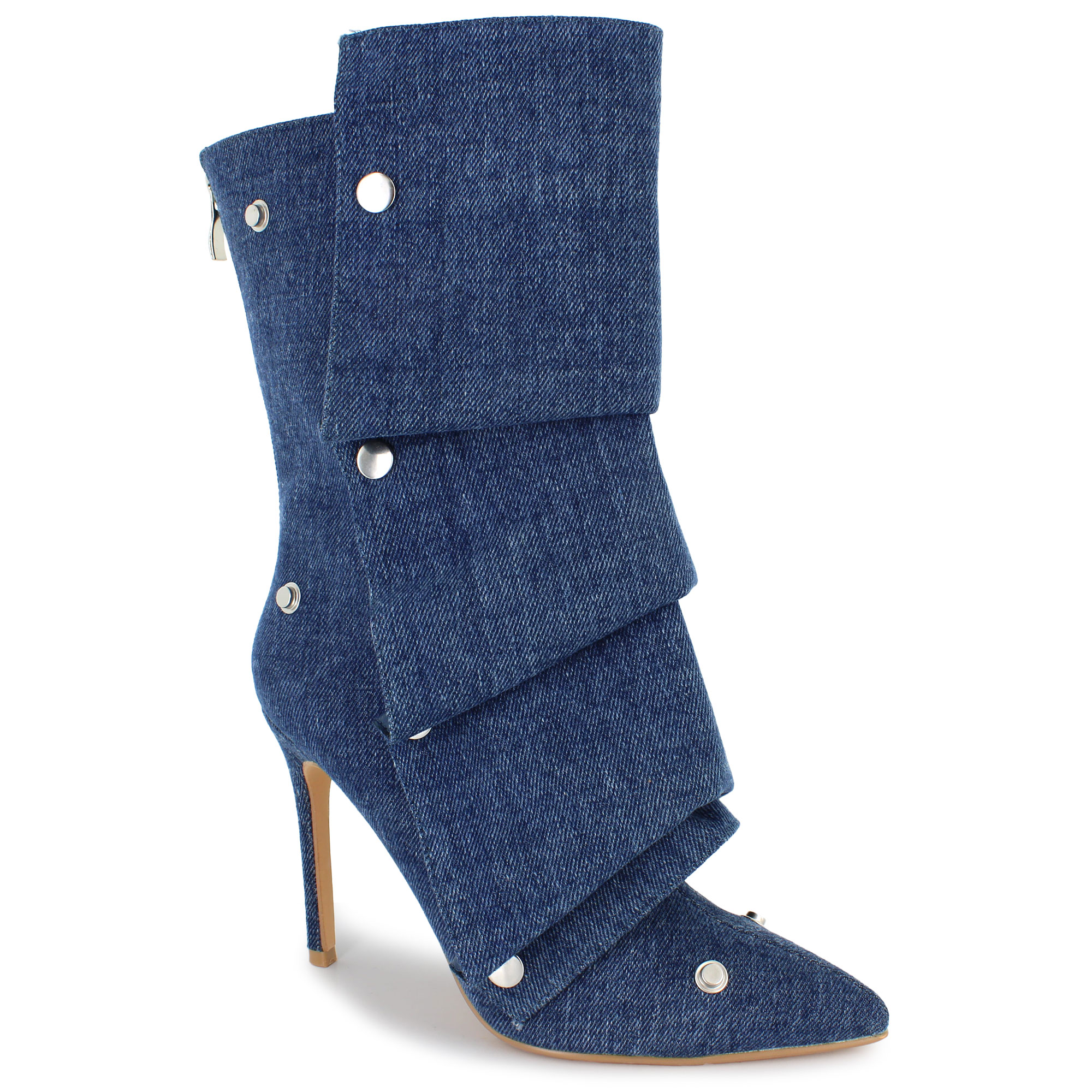 Make your mark in the fashion-forward Yoki Nayla-68 boot. The stiletto heel and pointed toe deliver a striking silhouette, while the folded fabric and metallic snap accents add customizable, edgy, and on-trend detail. A convenient back zipper ensures you're out the door in no time. Perfect for nights out or bold daytime looks, these boots bring serious attitude to your fall style.