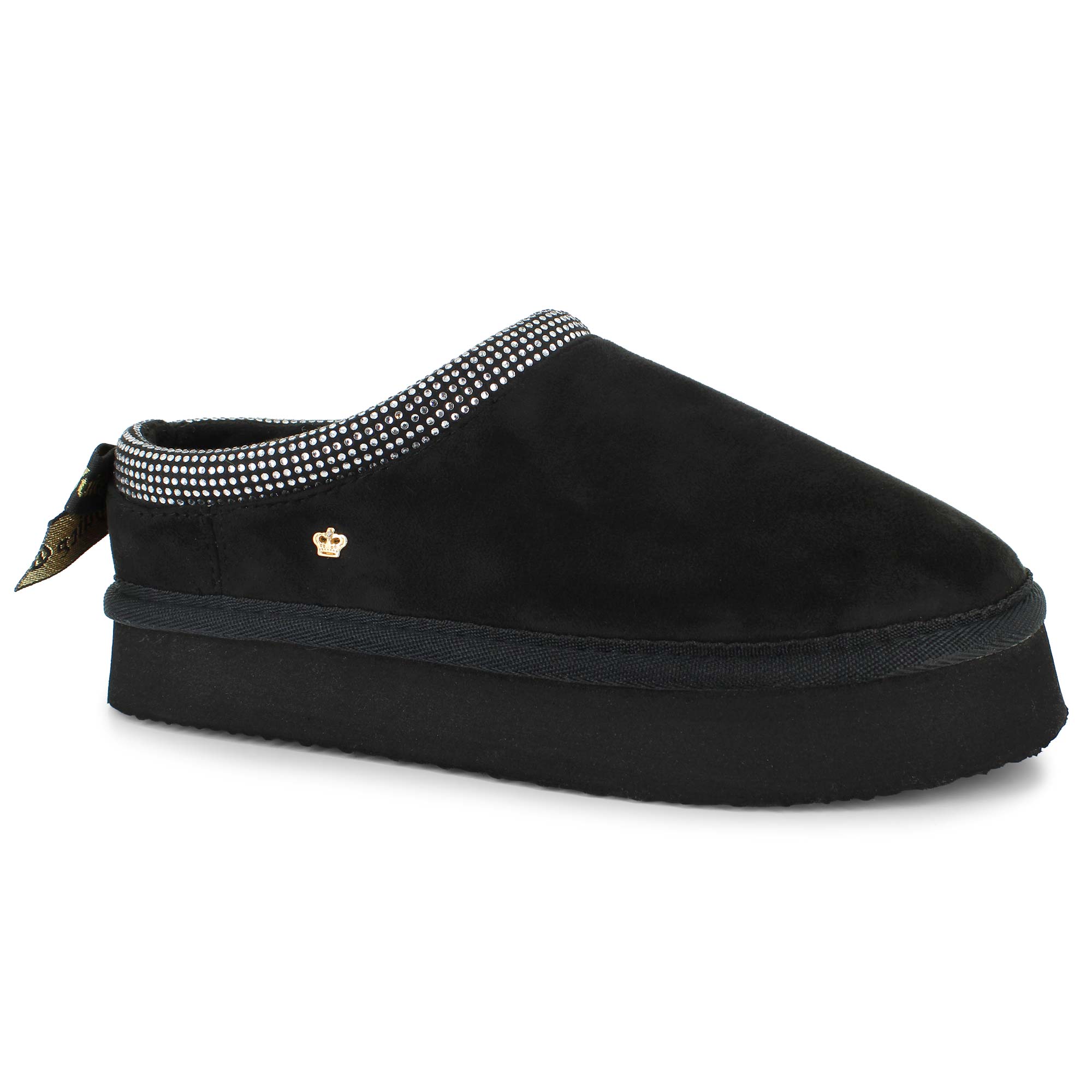 Step into effortless comfort with the Juicy Couture Olyana clog. Lined with plush faux fur, it's designed to keep you warm and snug all season long. A dainty bow on the heel and sparkling rhinestones details on the upper add just the right amount of glam. Perfect for pairing with sweats, leggings, or your favorite lounge set.