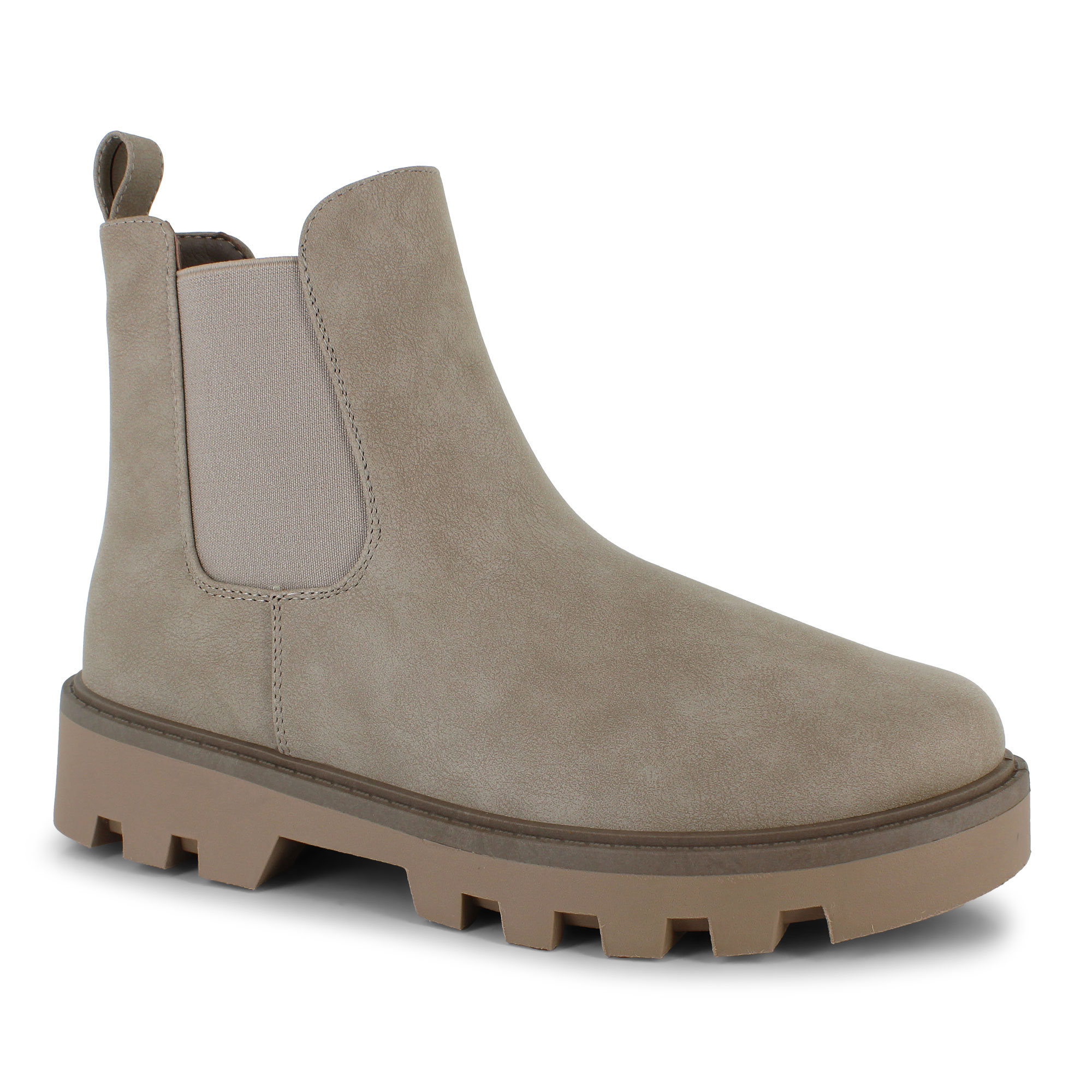 Step into effortless style with the Laundry List Pitcher ankle boot. Featuring a sleek faux-leather upper, this boot offers a convenient slip-on style with dual side stretch panels for easy wear. The back pull-tab adds to the functionality, making it simple to put on and take off. With a cushioned comfort insole, your feet will stay comfortable throughout the day, while the rubber traction outsole ensures stability on various surfaces.