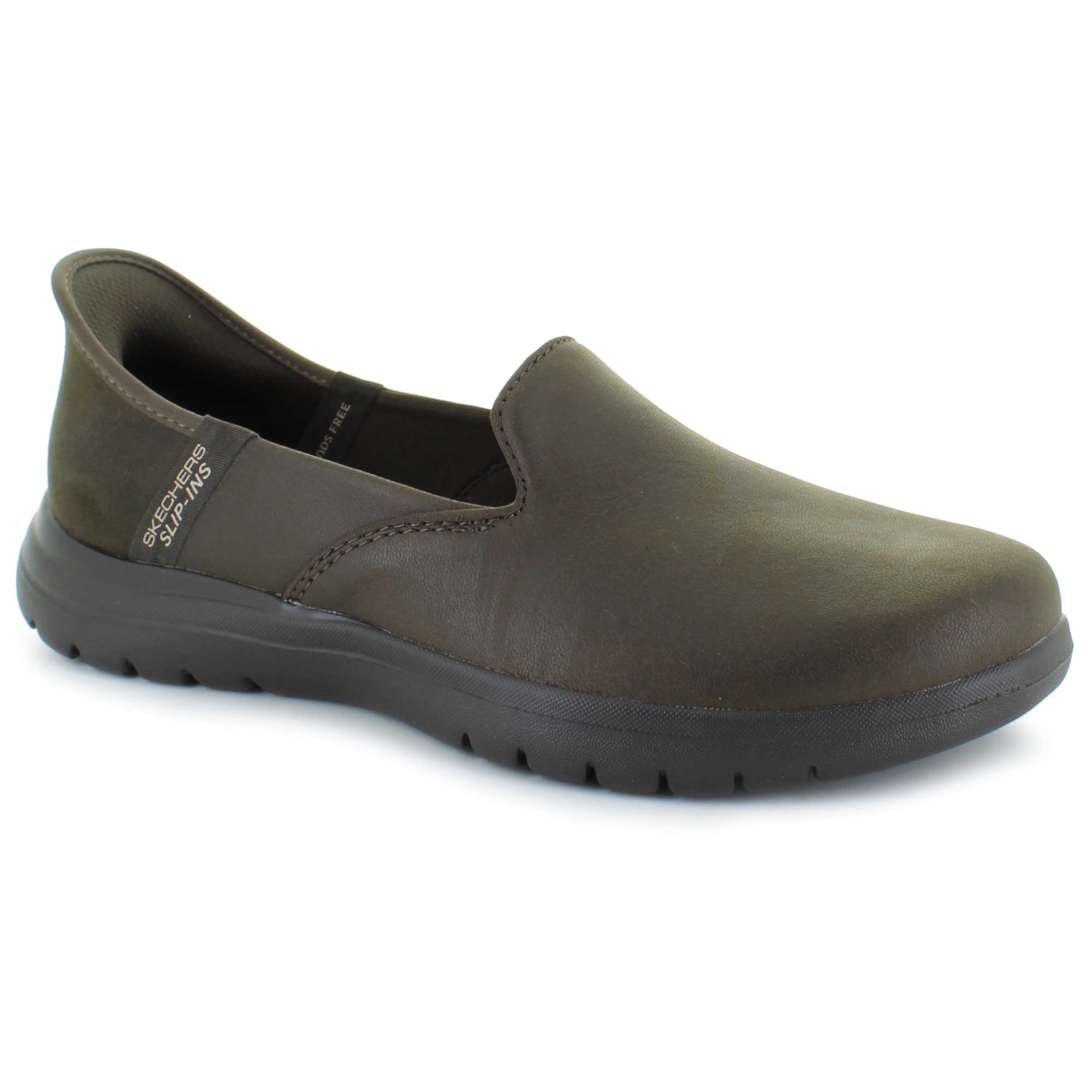 Step into stylish comfort with Skechers Hands Free Slip-ins: On-the-GO Flex - Captivating. Designed with our exclusive Heel Pillow, this slip-on features a faux leather Perform Tex upper with a Skechers Air-Cooled Memory Foam comfort insole and a lightweight ULTRA GO cushioned midsole.