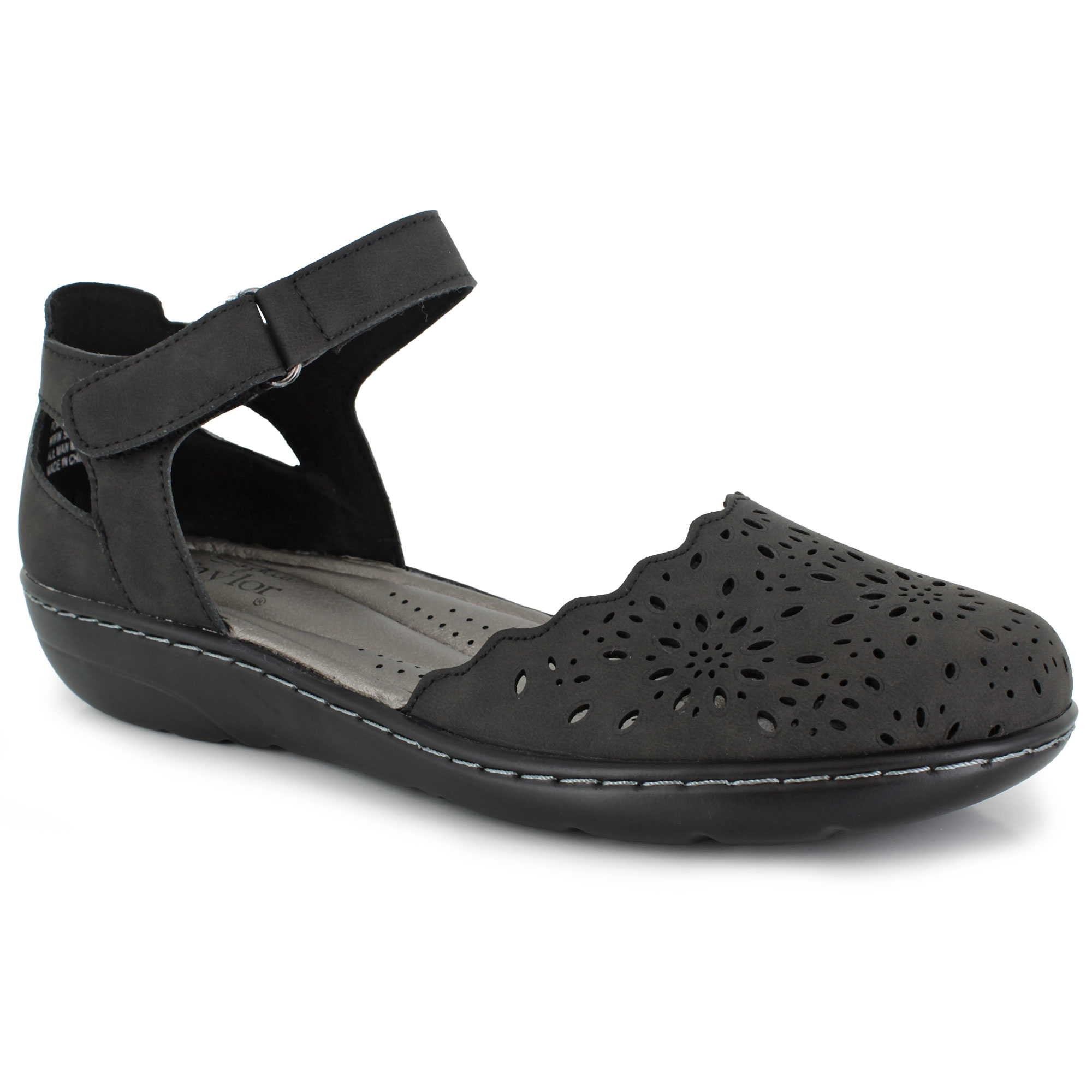 The Sophia Taylor Shelly reimagines a classic silhouette with modern comfort features. The lightweight upper is detailed with unique floral perforations and a scalloped edge. Experience superior support thanks to the contoured, high-cushion footbed and a sturdy rubber sole that keeps you grounded on any surface. The adjustable ankle strap provides a secure fit.