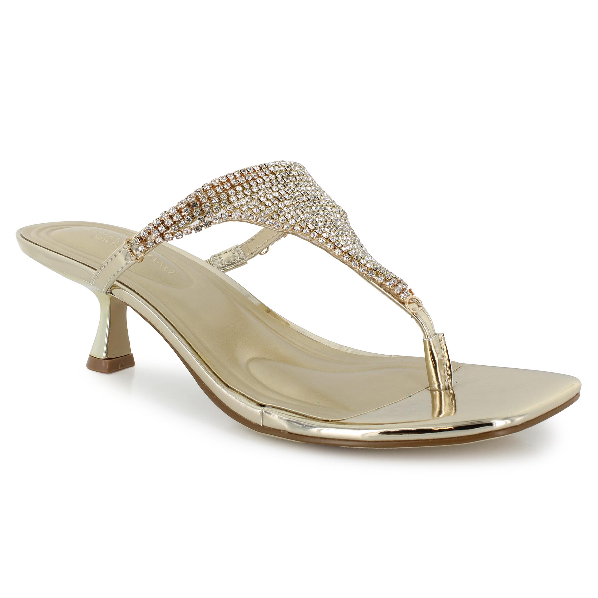 Add a touch of glam to your Christian Siriano Imay kitten heel. This thong design sandal features a lightly padded footbed and stiletto heel. A rhinestone adorned upper makes every step sparkle to make you and your look stand out.