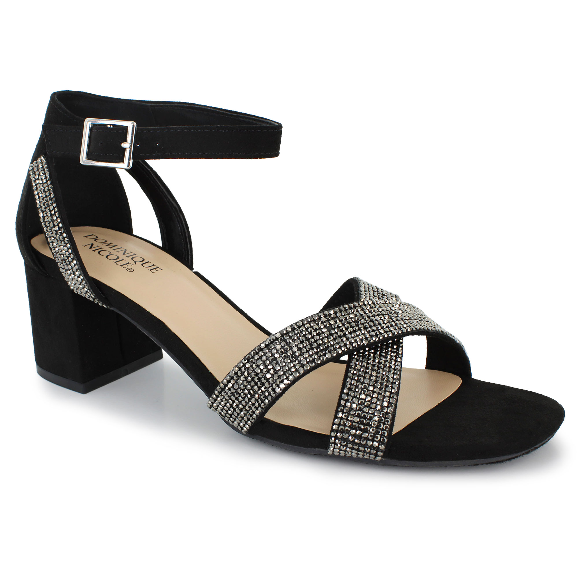 Elevate your evening look with pure radiance. The Dominique Nicole Becky dress shoe is designed to dazzle, featuring a stunning array of rhinestones that catch the light with every movement. Experience stability without sacrificing style, thanks to the supportive sturdy block heel and a secure, adjustable ankle strap.