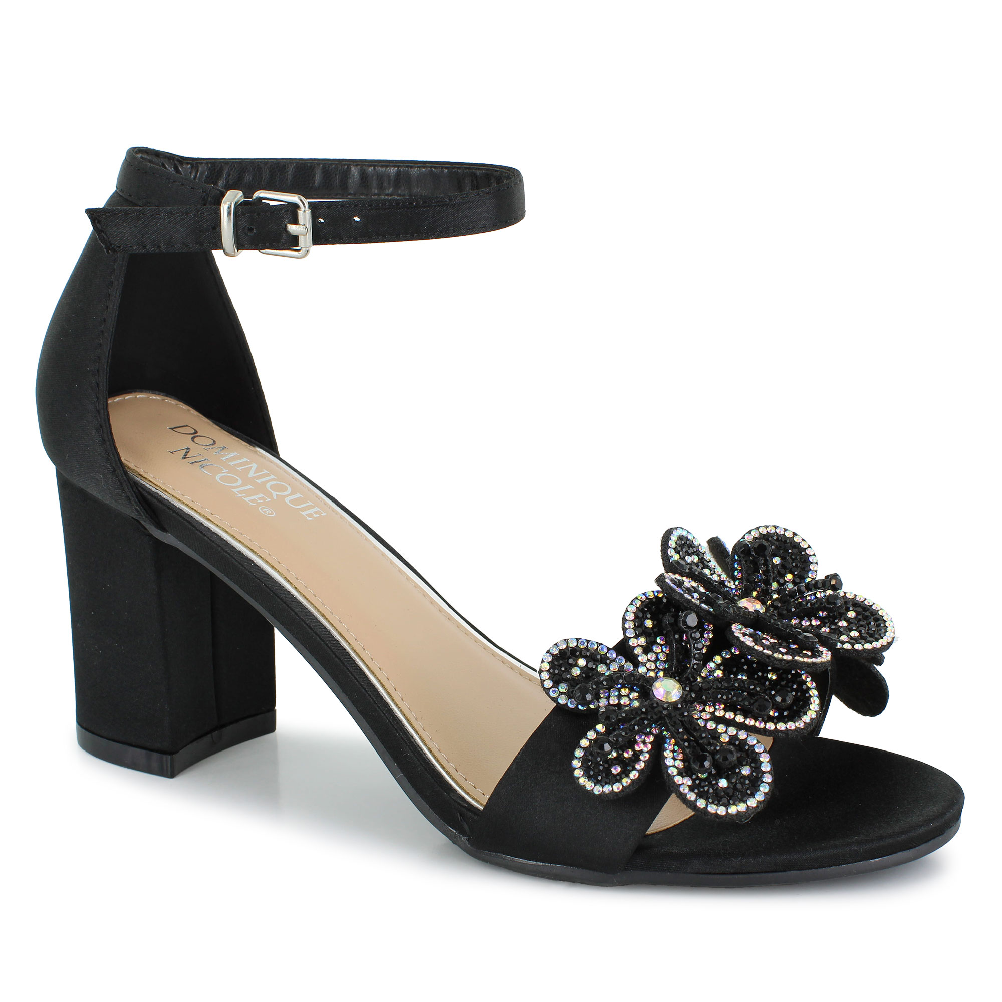 Add a touch of radiant glam to your evening wear in the Dominique Nicole Phyllis. A block heel, ankle strap and padded insole keep you supported all night. Stand out with the 3D flowers adorned in rhinestones, making every step sparkle. Perfect for special occasions and nights that call for extra dazzle.