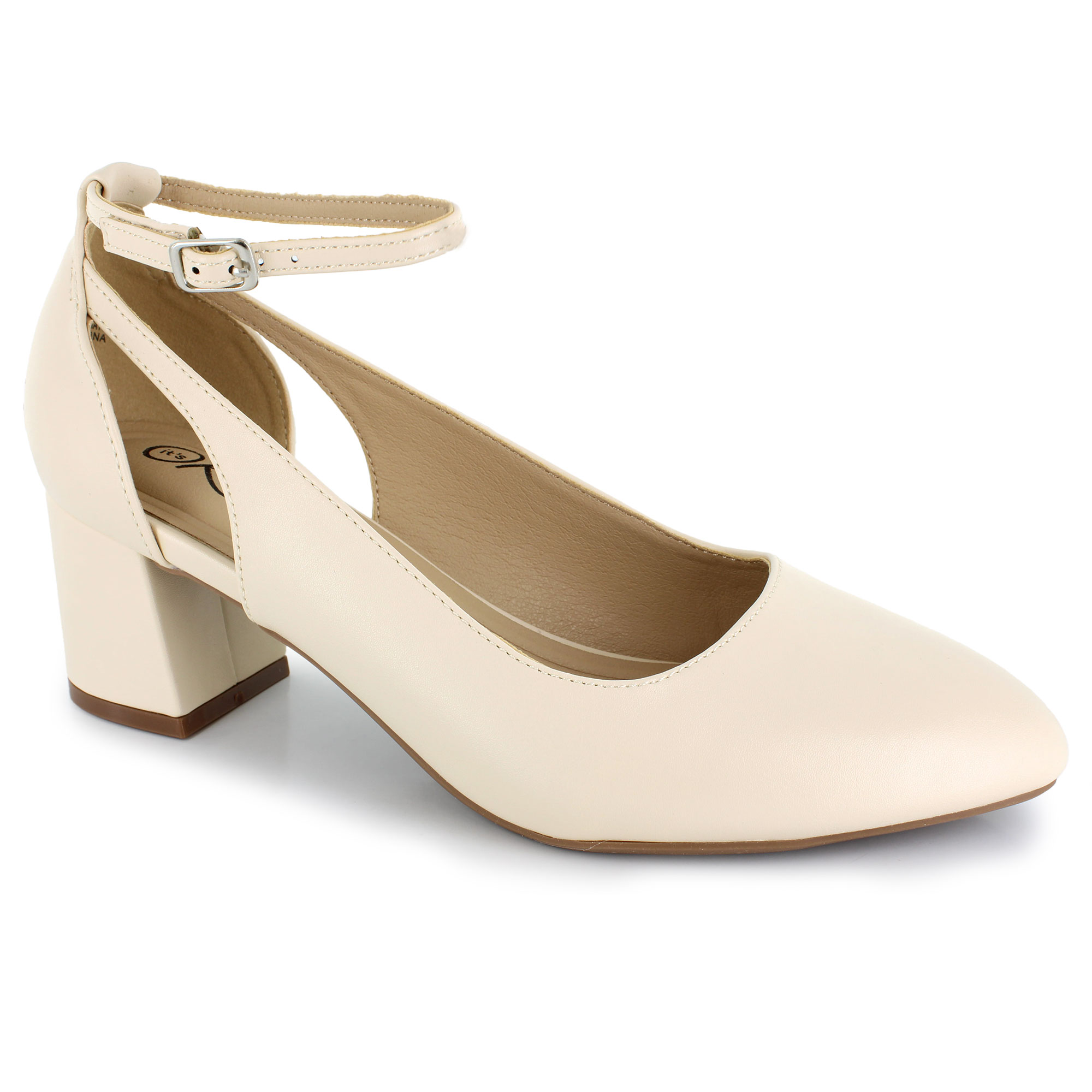 Be ready for the day in a pair of It's OK Blake heels featuring a sleek upper with an almond toe and a thin, adjustable ankle strap with a delicate buckle. The shoe showcases a classic, refined silhouette with a sturdy block heel, designed to transition seamlessly from professional office wear to evening events.