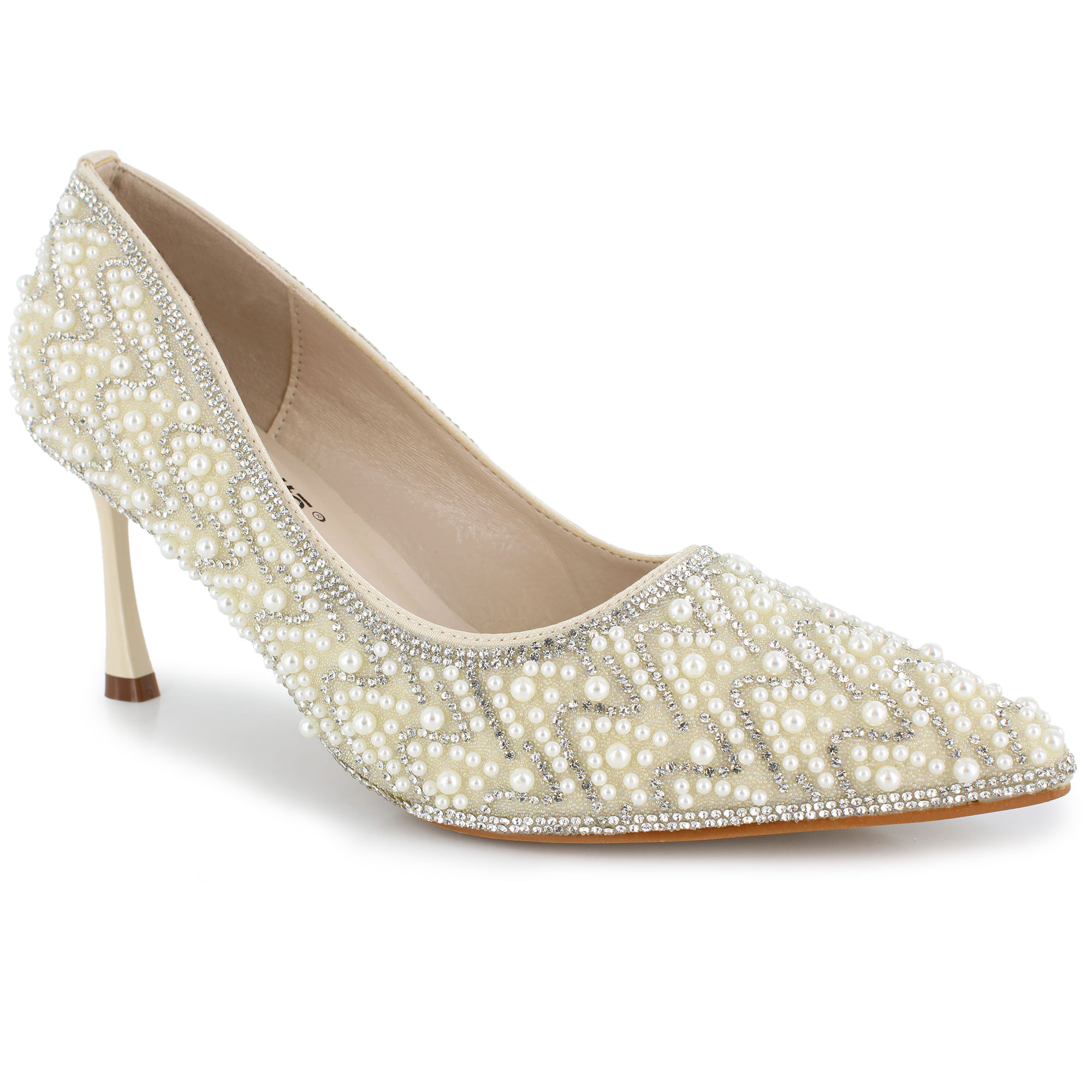 Elevate your formal wardrobe with the Studio Infinite Rejane, a slip-on designed for those who appreciate the finer details. The sleek synthetic upper serves as a sophisticated canvas for a striking mix of shimmering rhinestones and lustrous pearl accents, offering a high-fashion look with an edgy twist. These shoes feature a padded insole for all-night comfort and a durable outsole for confident movement. Whether it's a gala or a black-tie wedding, the Rejane ensures your style is unforgettable.