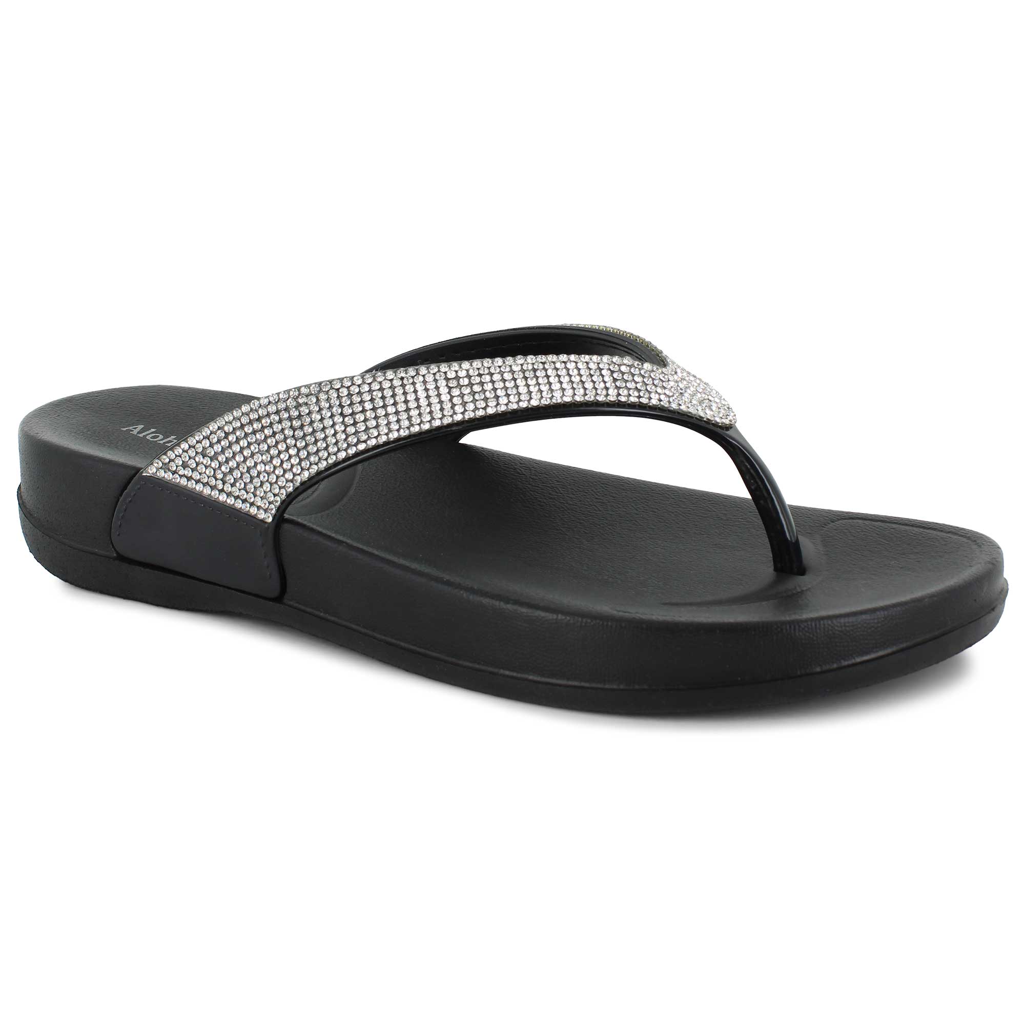 Sparkle in the sun in the Aloha Island St. Tropez thong sandal. Featuring a cushioned midsole and a traction outsole for support in every step. Bedazzled straps make a statement perfect for casual outfits that need a little extra detail.