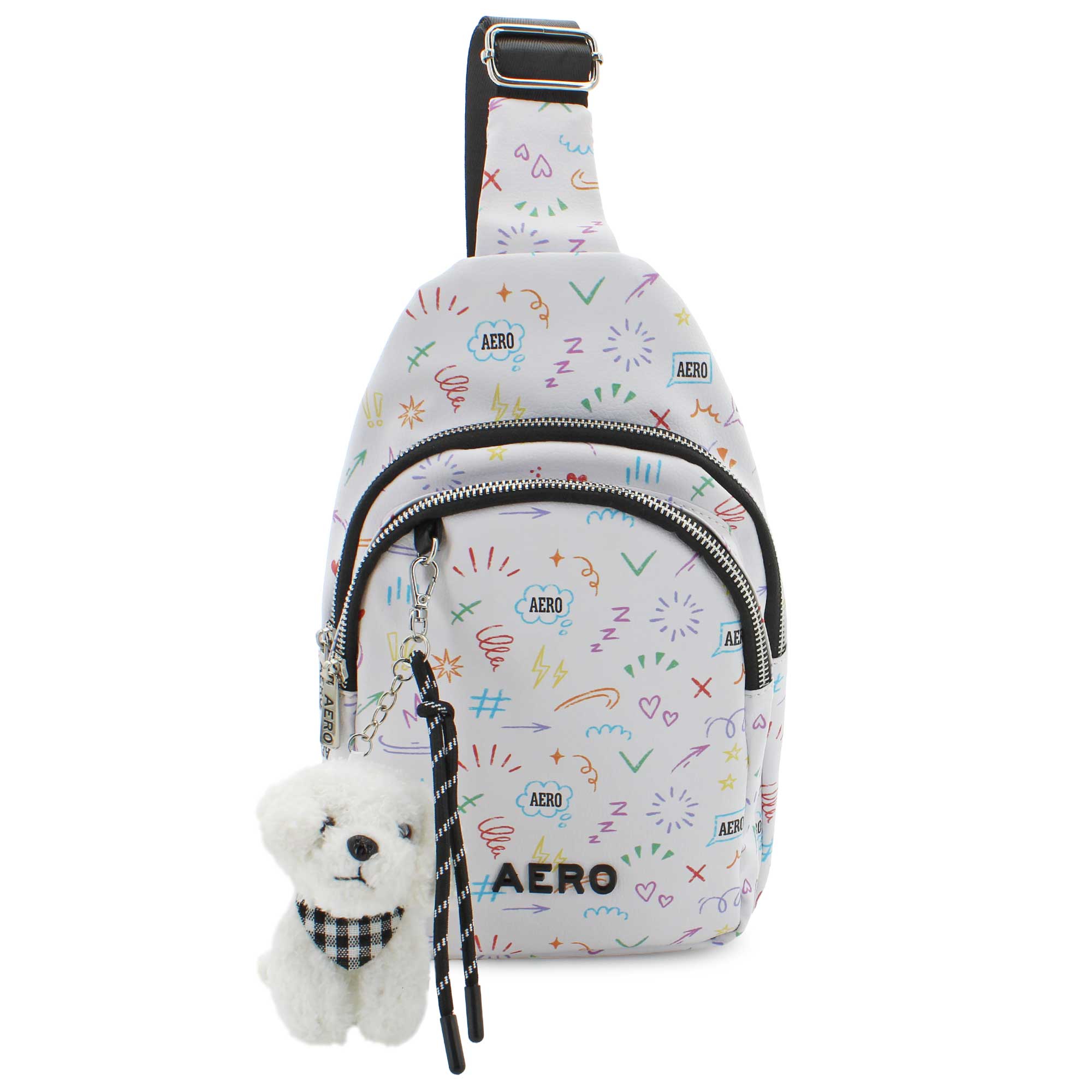 Stay effortlessly on-trend with the Aeropostale Alexa Sling with Plush Dog Bag Clip, a playful yet practical accessory designed for everyday style and convenience. This compact sling bag features a sleek, lightweight silhouette that'sperfect for hands-free wear, whether you'rerunning errands, traveling, or heading out with friends. The bag features a fun and colorful design that resembles scribbled doodles on a page and includes an adorable plush dog bag clip. Shop SHOE DEPT. ENCORE today.