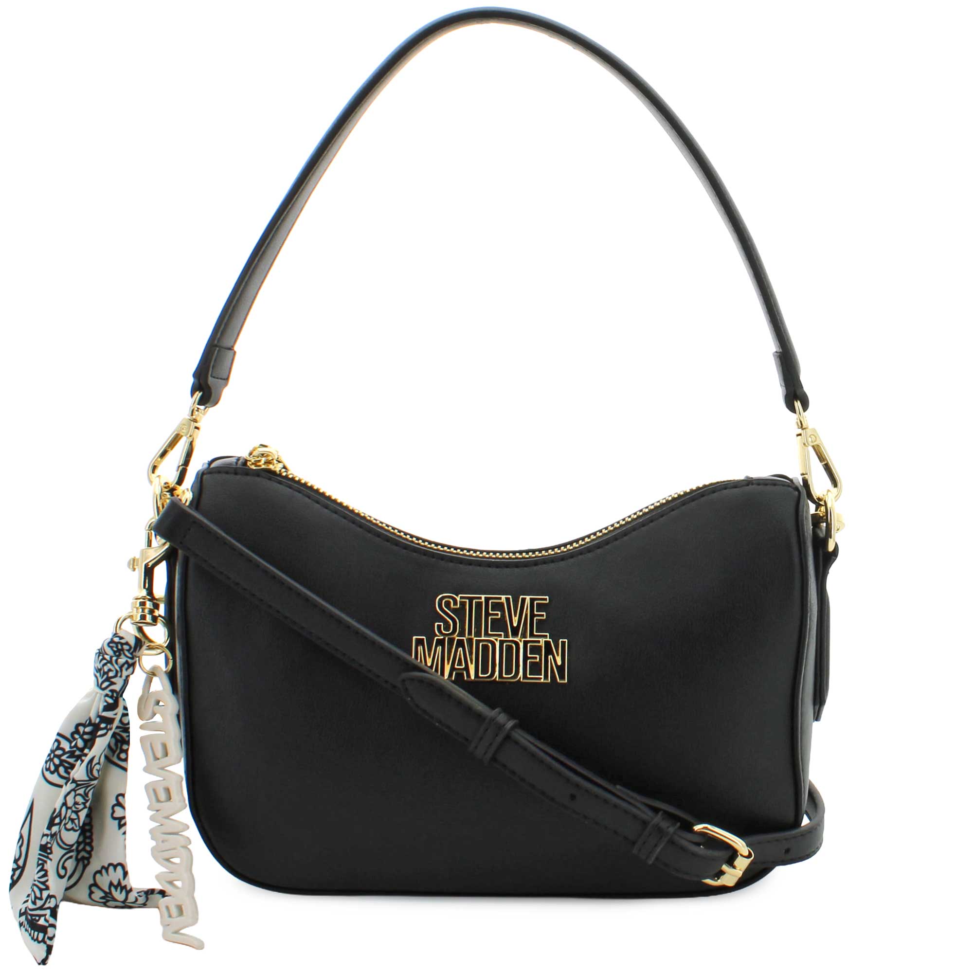 - clip-on Steve Madden logo bag clip with tied scarf accent