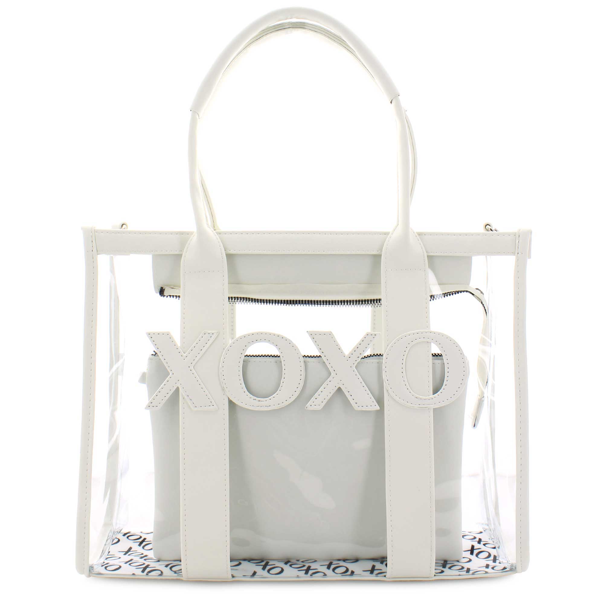 The XOXO Paxton Clear Tote With Matching Wristlet is the ultimate accessory for both style and practicality. Crafted from durable clear PVC with chic faux-leather trim accents, this tote offers a modern, fashionable look while meeting event and venue requirements. The spacious interior ensures you have plenty of room for your essentials, while the matching removable zippered pouch provides added storage and organization. Designed for versatility, the tote features comfortable carry handles and an adjustable shoulder strap, allowing you to wear it in multiple ways. Perfect for sporting events, concerts, or everyday use, the XOXO Paxton Clear Tote is a must-have for those who value both functionality and on-trend style. Shop SHOE DEPT. ENCORE today.
