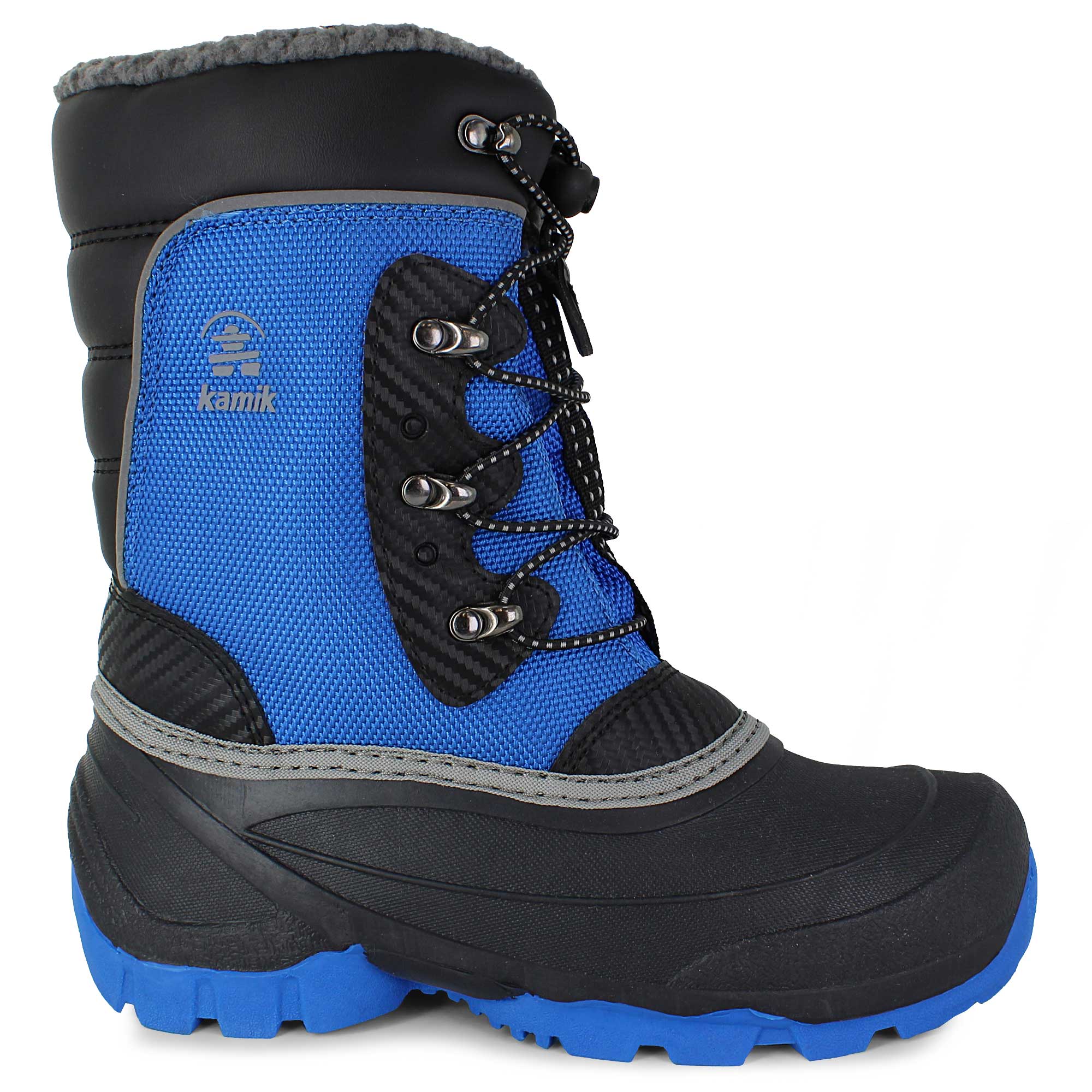 These Kamik boots are ready to take on winter, featuring a waterproof nylon upper, an adjustable collar, and soft fleece insulation that keeps small feet warm and dry up to -40 degrees Fahrenheit. Their simple bungee closure helps kids get geared up without a struggle. In no time, they will be racing outside for exciting snow-filled adventure.
