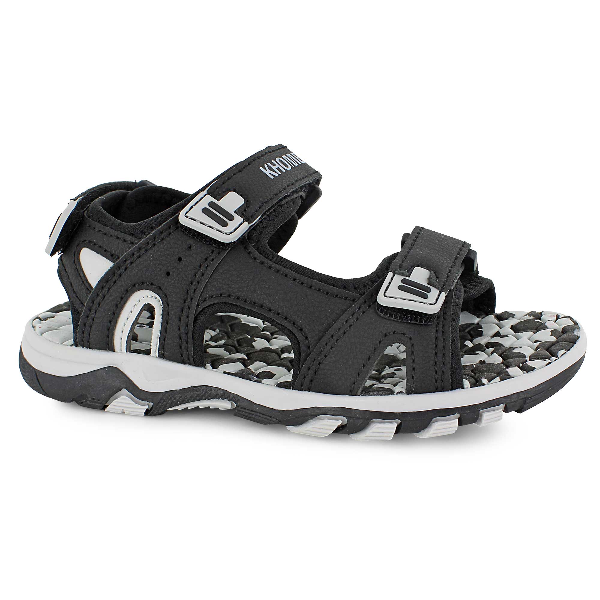 - three hook-and-loop strap closure, including around heel for a secure fit
