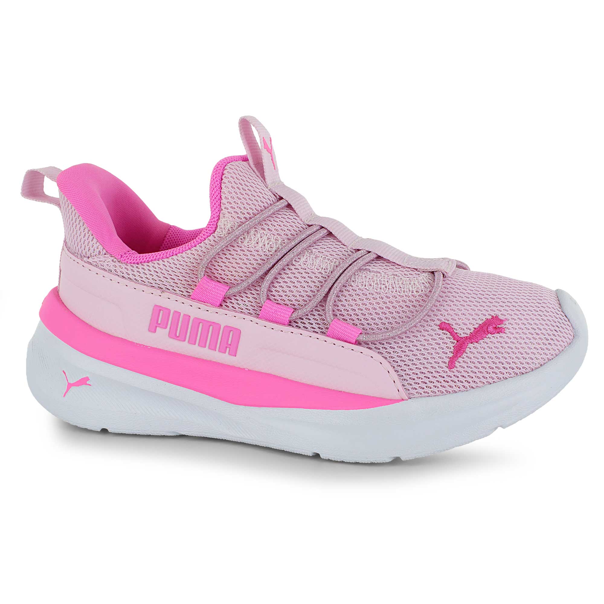 Ready for anything! This sporty Puma running shoe blends comfort, lightweight design, and style. The breathable mesh upper provides support, while the padded heel and cushioned footbed offer all-day comfort. Elastic laces make slipping them on and off a breeze, so you're ready for class or weekend adventures in seconds.