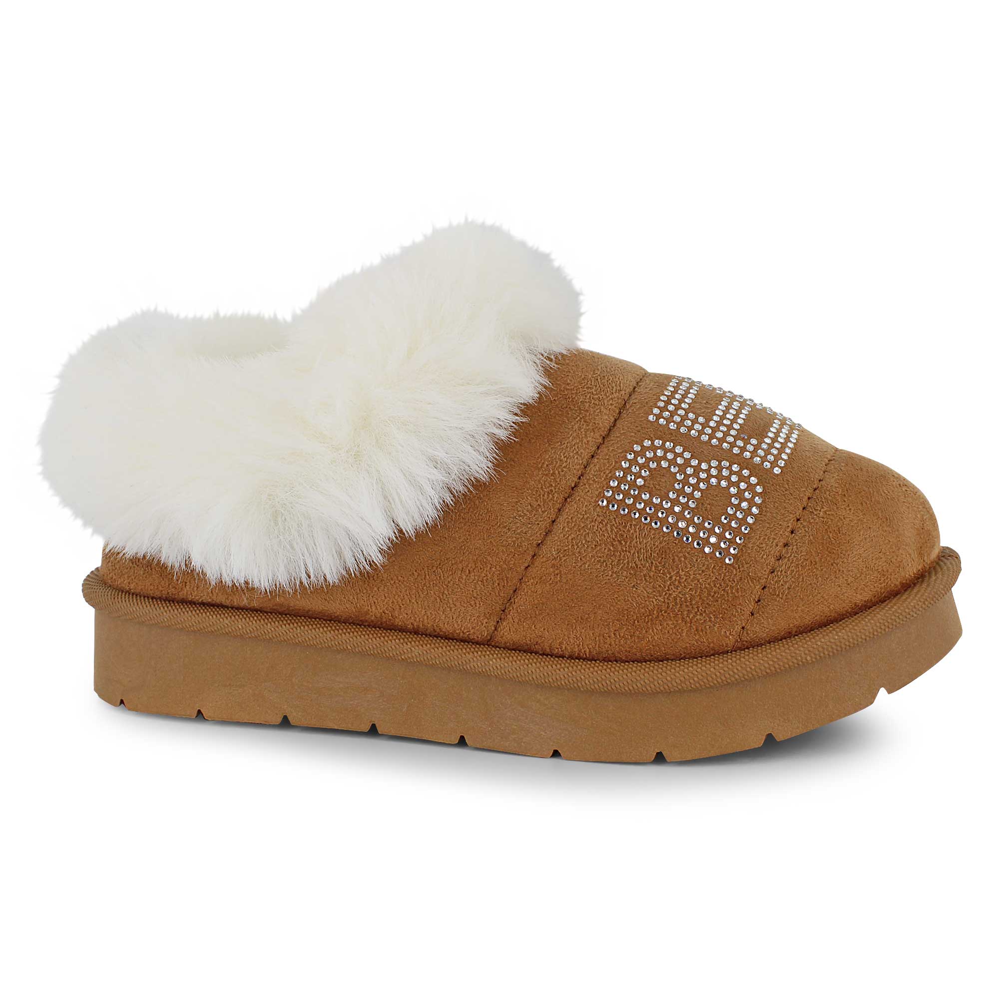 Slip into cozy glam with this trendy low clog bootie, crafted from soft microsuede and finished with a dazzling rhinestone bebe logo. A plush faux-fur trim collar adds warmth and flair, while the cushioned footbed and flexible sole ensure all-day comfort. This slip-on style combines laid-back ease with a bold fashion statement.