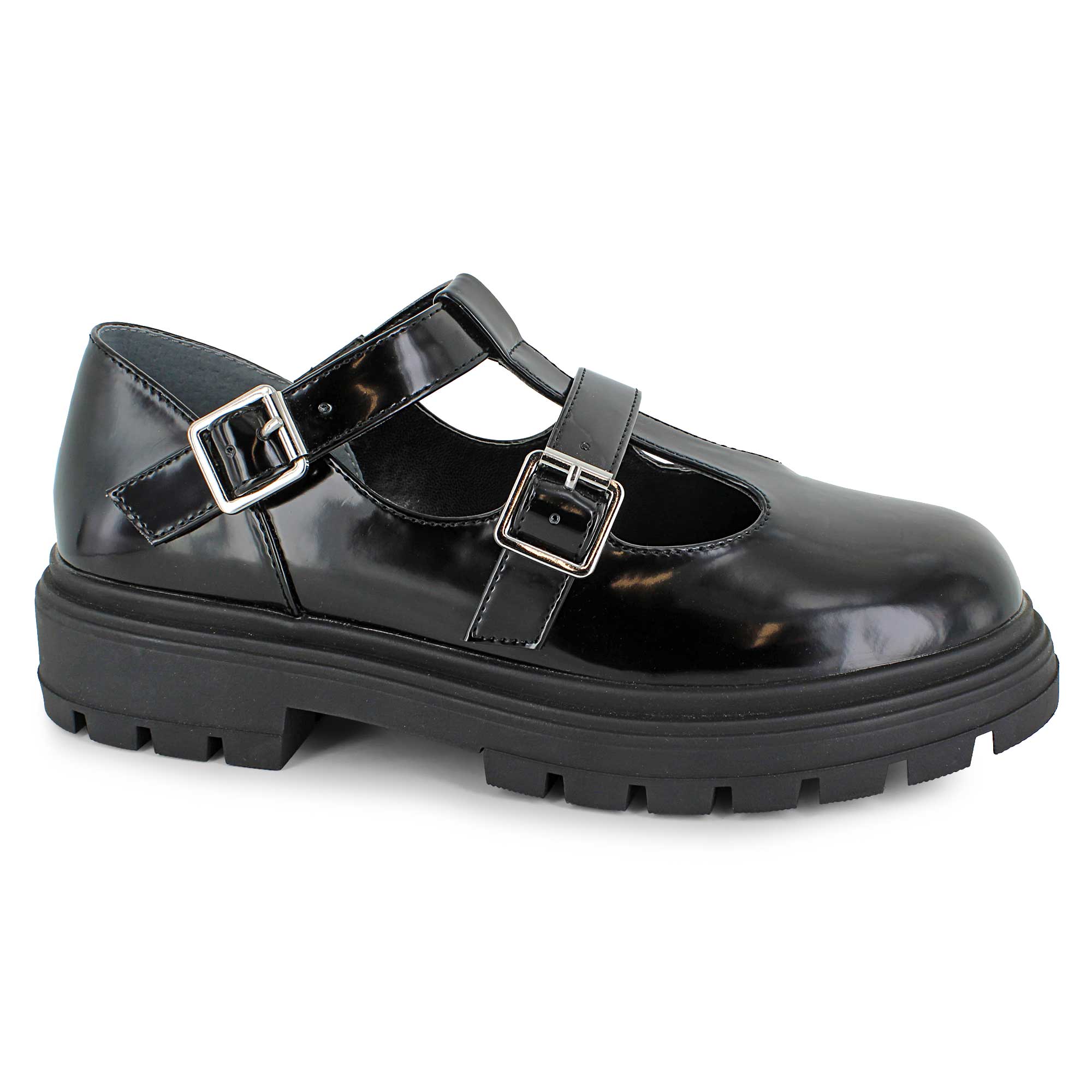 This Nina dress shoe offers a modern take on the classic Mary Jane style. Two buckle closures provide a secure fit, while the durable raised sole adds comfort and stability. Perfect for school days or special occasions, it blends polished style with everyday wearability.