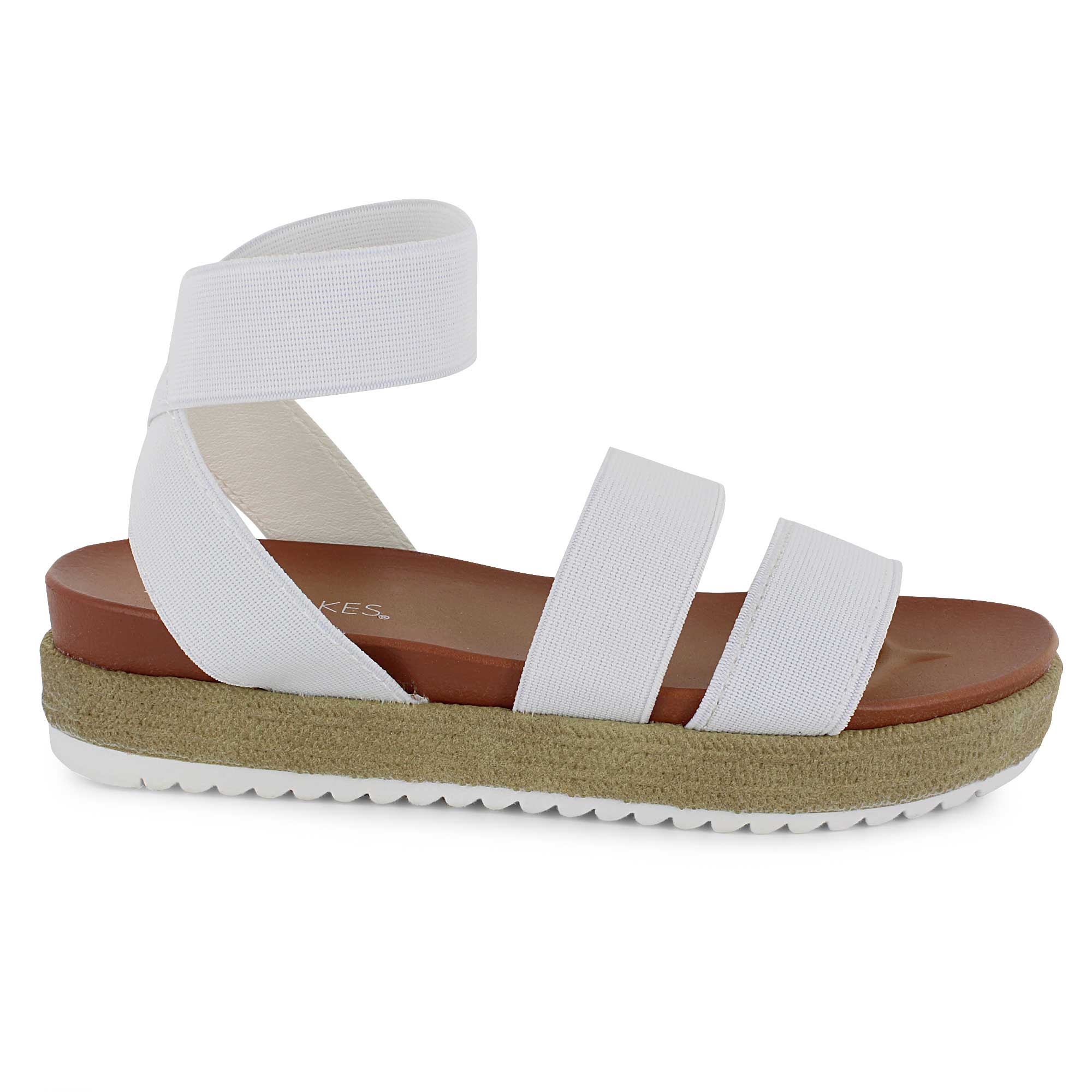 This Hot Cakes sandal features stretch elastic straps for easy wear and all-day comfort. A stylish strap wraps around the ankle for a secure, supportive fit. Finished with a flexible platform sole, it's perfect for warm-weather fun and everyday adventures.
