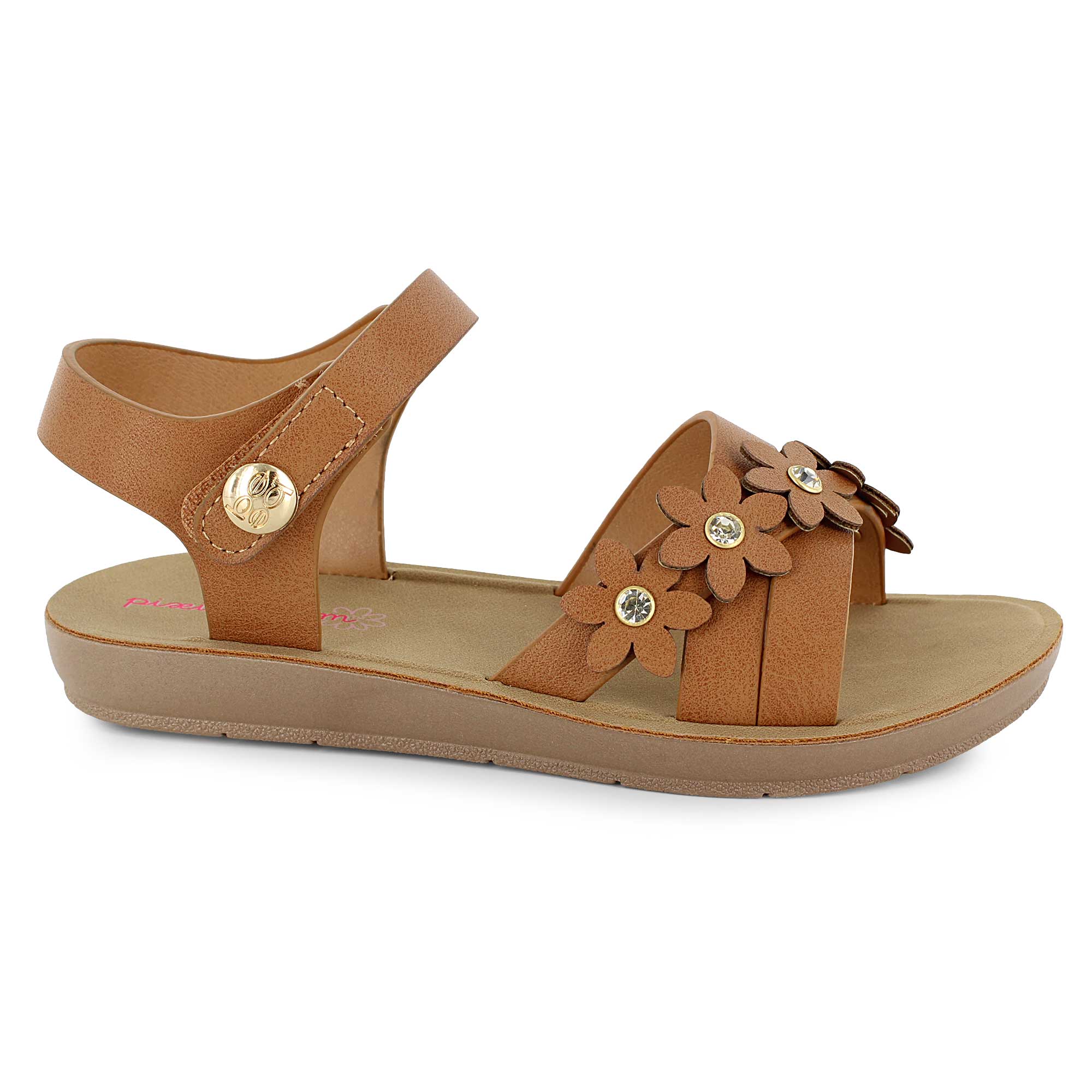 These Pixie Bloom fashion sandals feature a flexible low wedge footbed designed for easy and stable wear throughout the day. Decorative flower accents with rhinestone centers add a touch of sparkle to any warm-weather look. The adjustable strap closure ensures a secure fit, making these a charming choice for both special events and casual outings.