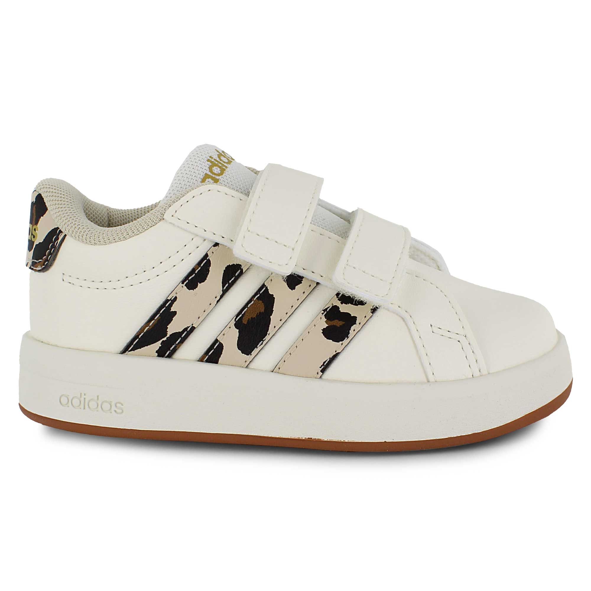 - classic adidas striping on side with leopard print design