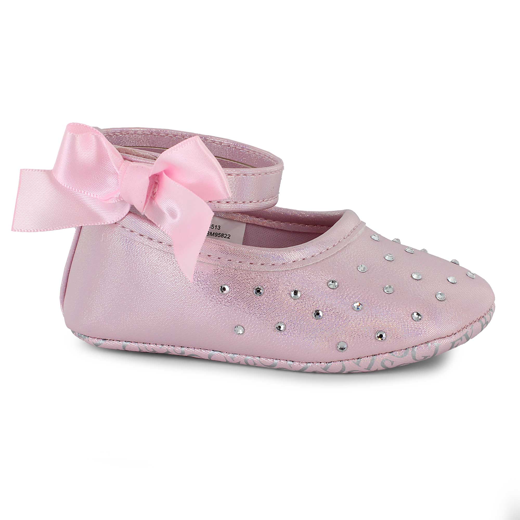 A shimmery iridescent upper covered in rhinestones makes this baby shoe sparkle with every move. The strap closure around the ankle features large bow embellishments for an adorable touch. With a soft, flexible outsole, it keeps little feet comfy while adding a touch of magic to any outfit.