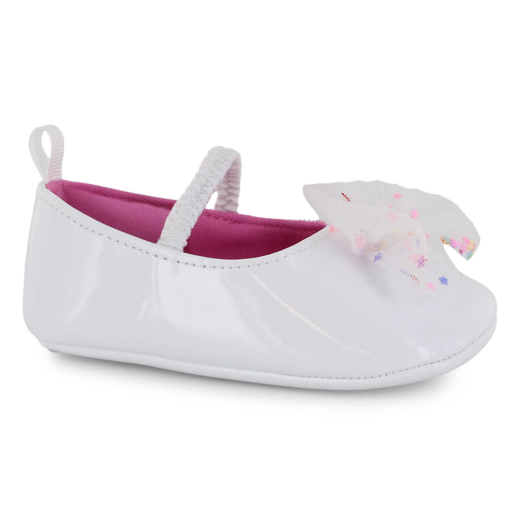 Make sure they're ready for any party, holiday and special event. These cute dress shoes feature an elastic strap closure to keep them secure as they move, along with a durable flat outsole. A large bow embellishment with colorful confetti inside adds extra style.