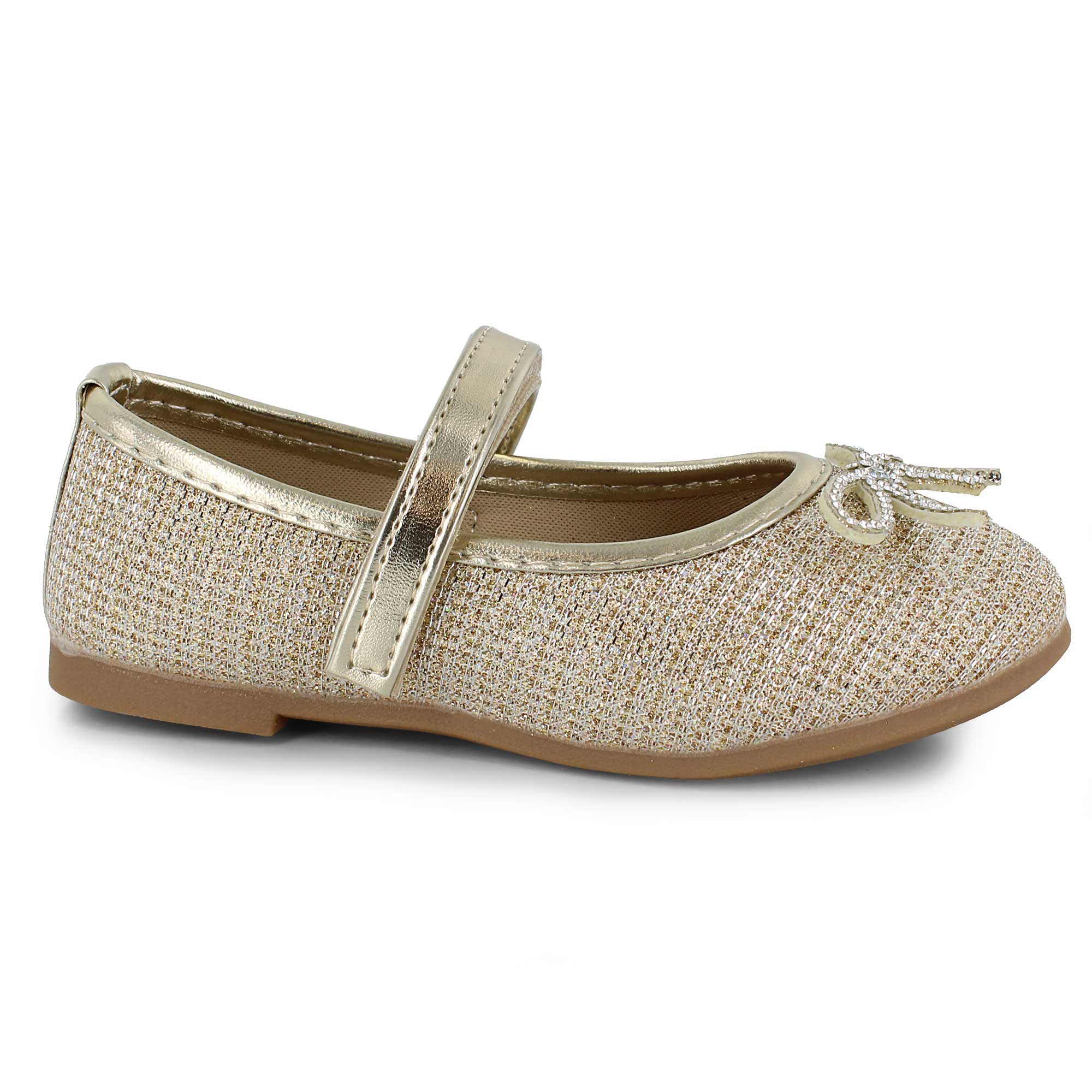 These eye-catching Kensie Girl flats shine with a glitzy metallic upper, making them a standout choice for any celebration. The secure strap closure provides a stable fit for little feet on the move, while the rhinestone-covered bow on the toe adds a brilliant, high-fashion sparkle. Perfect for parties or portraits, these shoes bring a touch of magic to every small step.