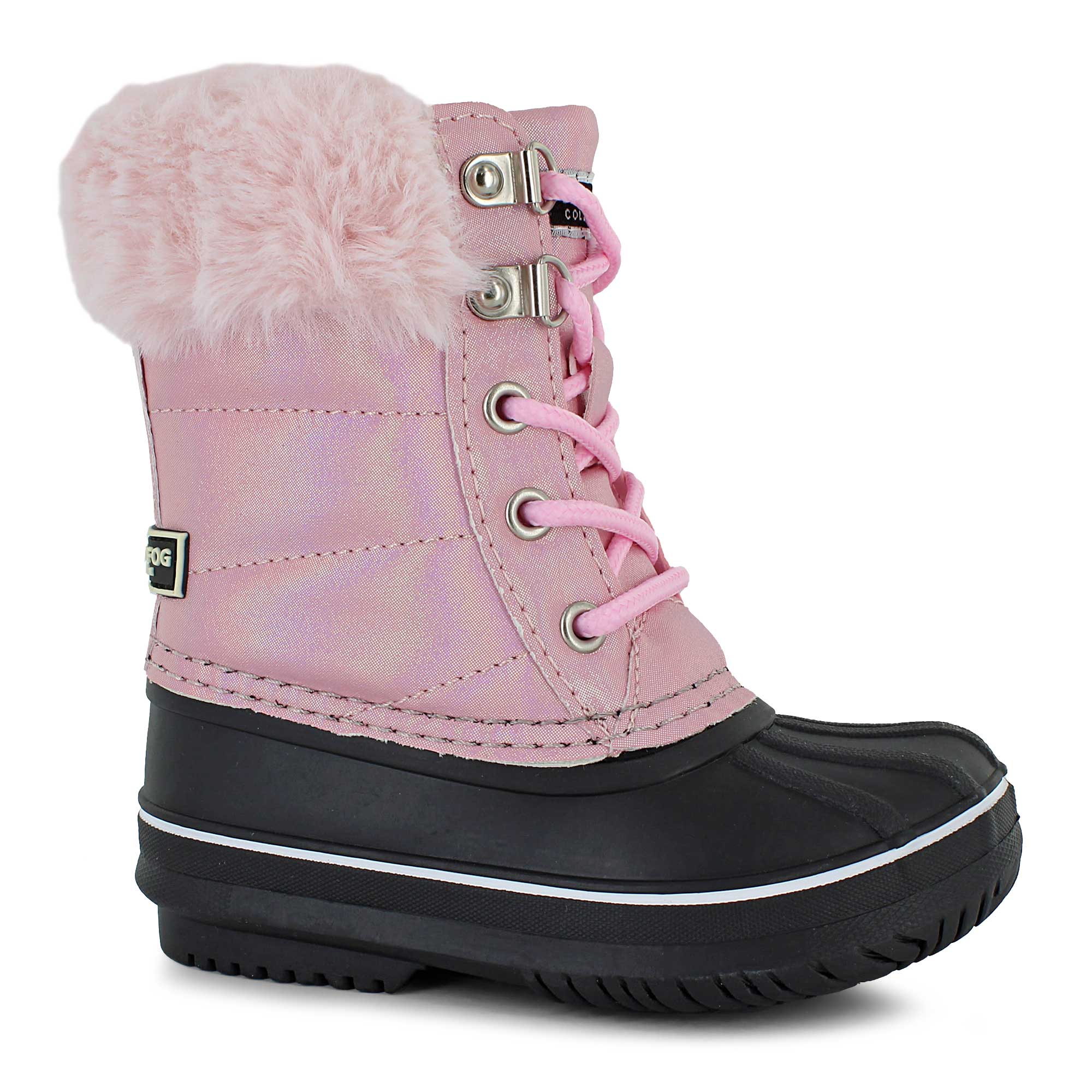 Get them cold-weather ready with these fashionable London Fog lace-up boots. The lightweight construction and soft interior lining helps keep them comfortable as they move through the day. Take on the weather with style in a fun iridescent upper and water-resistant shell outsole that keeps them dry. Find them now at SHOE SHOW MEGA.