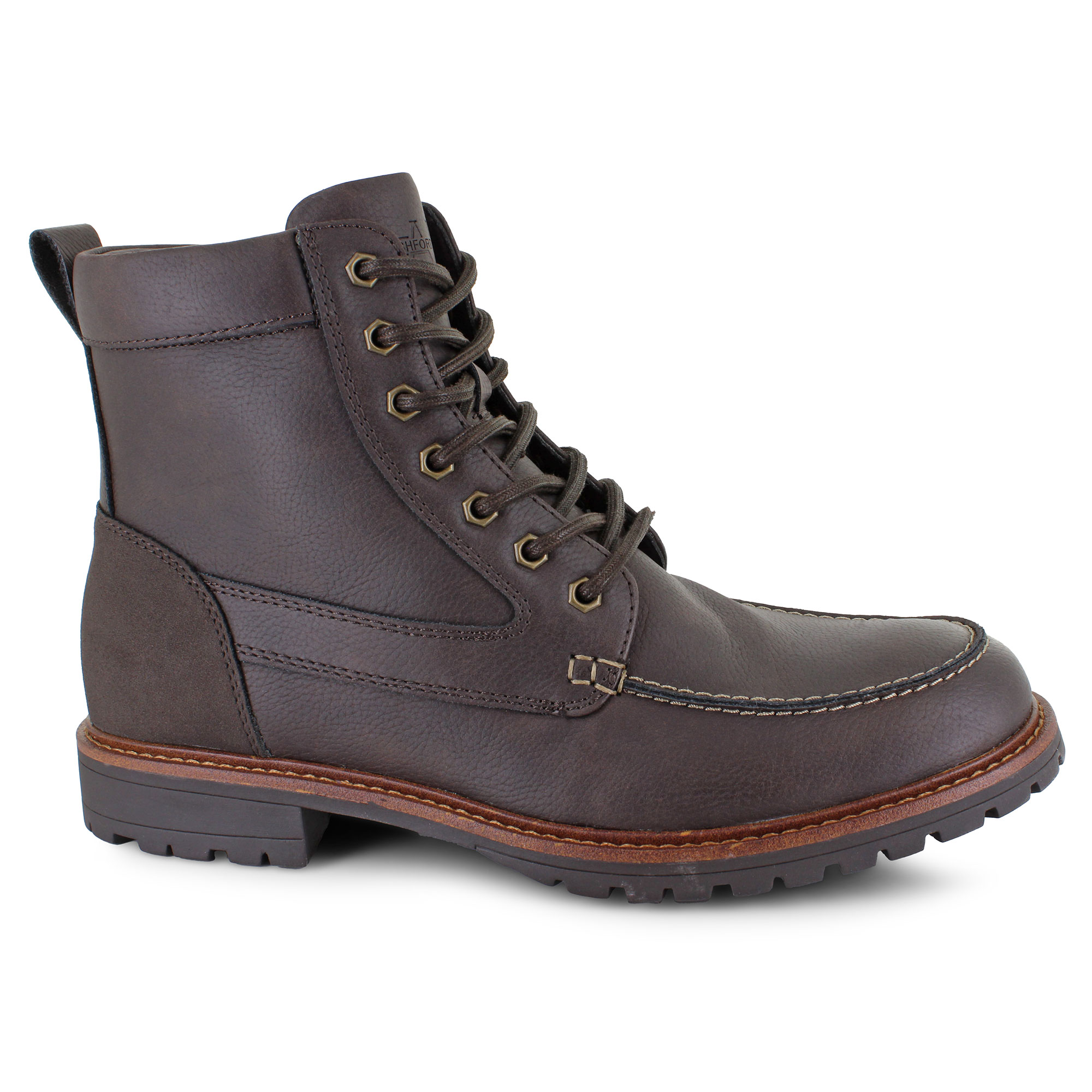 Dress up any occasion when you gear up with the Ashford Hayes Midway. With a tumbled, synthetic leather upper and a handsome moc-toe design, this boot is the perfect addition to your wardrobe this season. Pairing well with jeans and khakis, this stylish boot features a side zipper that allows for an easier on and off and a lightly treaded synthetic outsole that ensures superior traction on multiple surfaces.