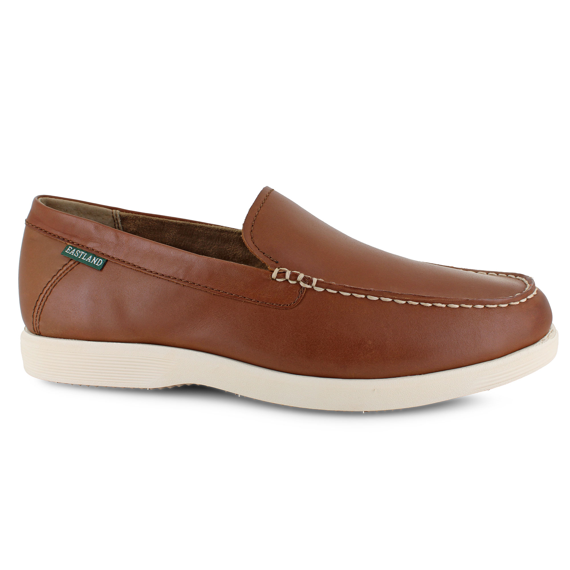Step into your next handsome casual look with the Eastland Scarborough loafer, providing classy style to dress up any outfit. This slip-on is sure to turn heads with a smooth, genuine leather upper for a stylish Venetian loafer design. A cushioned insole ensures all-day comfort, while a lightweight synthetic outsole keeps a bounce to your step.