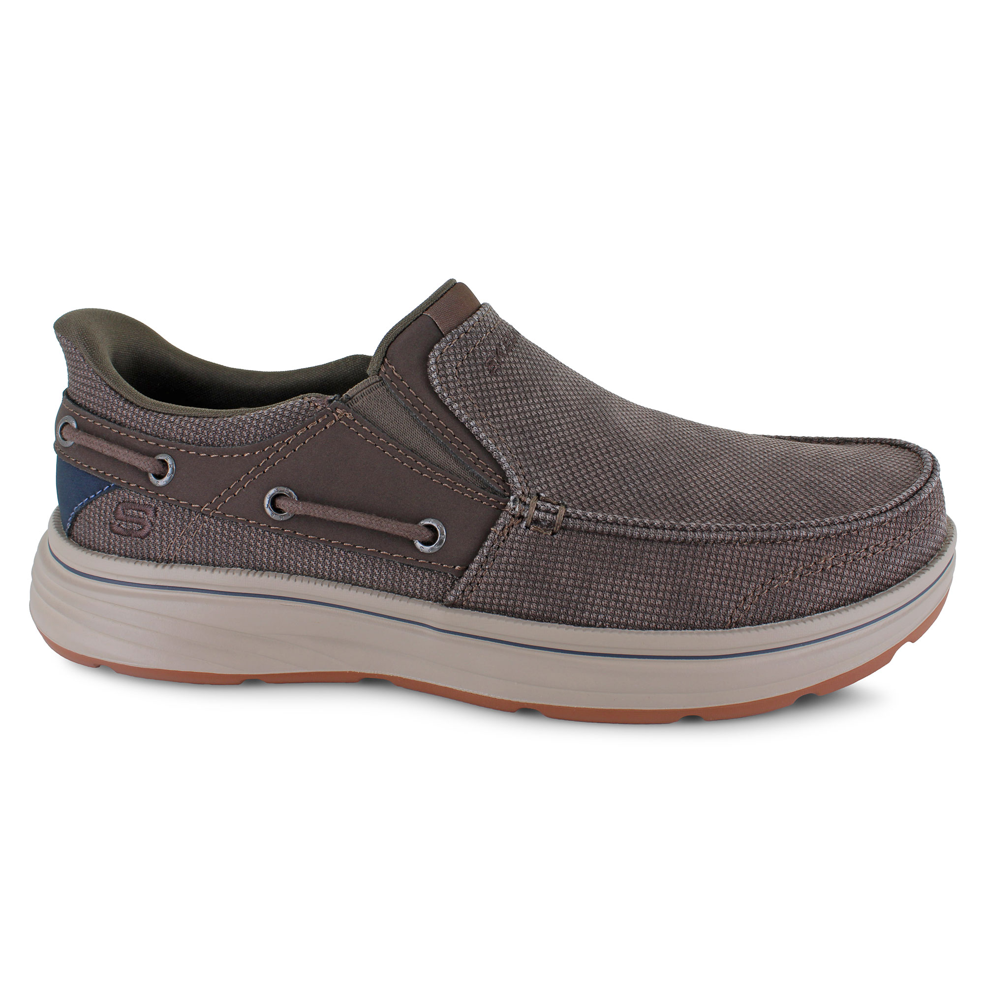 Breathable woven mesh-knit crafted into a handsome slip-on, the Skechers Slip-ins: Troutt - Rustic is the perfect casual boat-styled shoe with a roomy, Relaxed Fit design. This slip-on style features Skechers' Hands Free Slip-ins Touchless Fit for an easy fit with Heel Pillow technology to help keep your foot in place. A charcoal-infused Air-Cooled Memory Foam insole helps neutralize potential odors while providing unbeatable support.