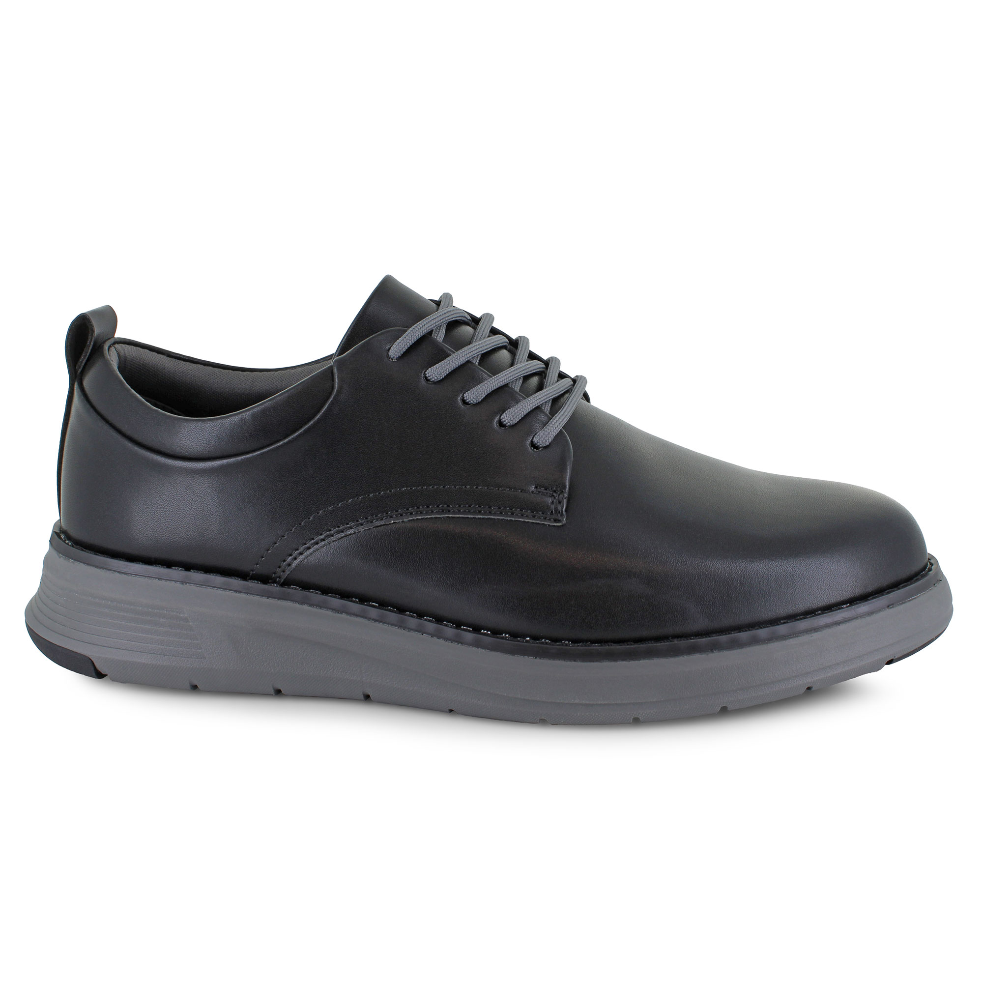 Look no further than the Ashford Hayes Craft oxford for a handsome blend of style and comfort. This plain-toe oxford is crafted from smooth synthetic leather that you can dress up or dress down for a stunning look, no matter the occasion. The sleek design pairs well with jeans, khakis, and dress attire, while a lace-up front closure keeps your foot snug in place and ready for the day. The lightweight comfort insole ensures all-day cushioning and support, while a synthetic outsole offers steady durability with durable rubber pads for aid.