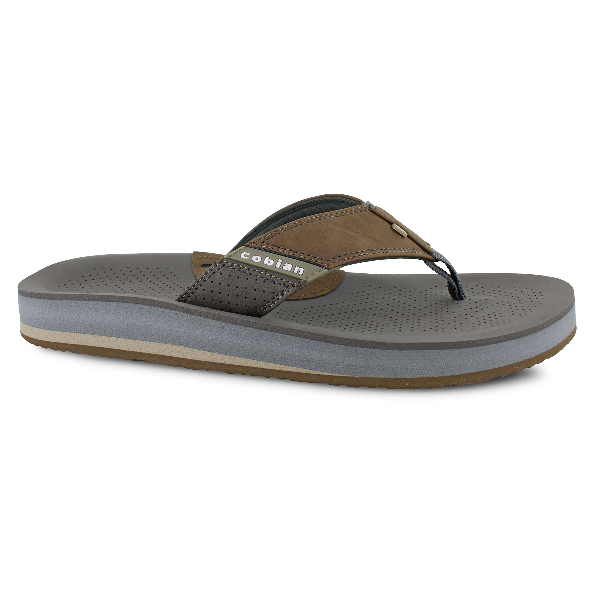 Slip into comfort with Cobian ARV2 and let your worries melt away. This lightweight thong-styled sandal is ready for the beach and pool day alike with an upper crafted from perforated synthetic leather that pairs well with swimwear or a pair of khaki shorts. A plush EVA footbed cushions your foot for superior long-lasting comfort. The rubber sponge outsole will keep you on your feet on sand and concrete by providing lightweight and flexible traction.