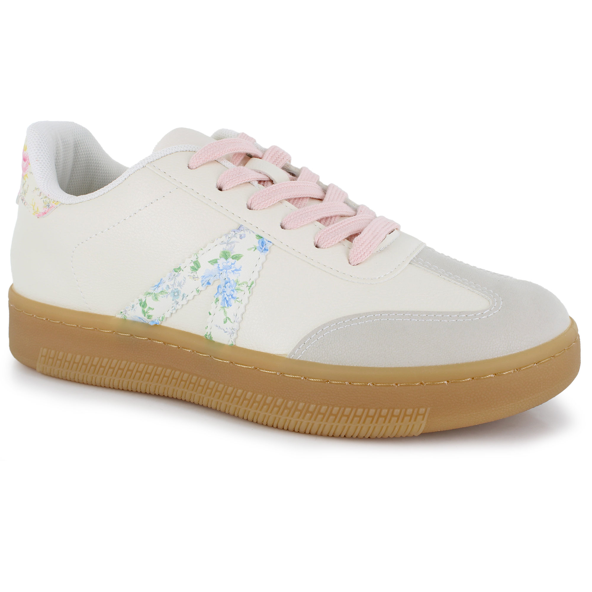 Level up your sneaker game with the MIA Girl Suzie, the perfect hybrid of sporty athleisure and feminine flair. These vegan leather kicks are all about the details, from the delicate floral accents to the standout pink laces that add a pop of personality to any outfit. Built for those on the go, they feature the MIA Signature Footbed and a durable gum sole, ensuring you stay as comfortable as you are cute from morning to sunset.