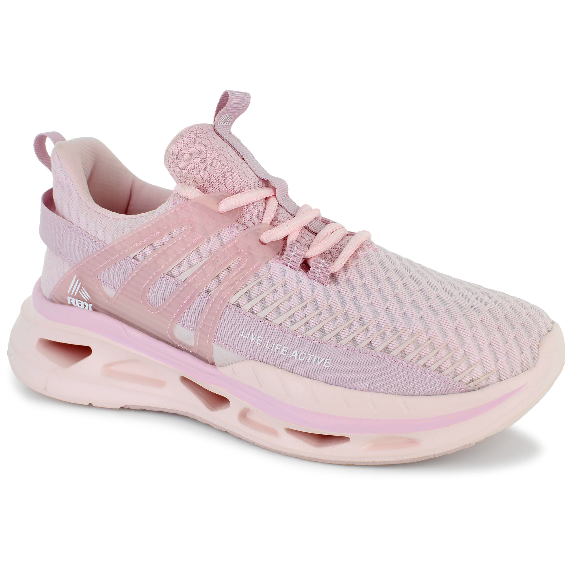 The RBX Slink-M athletic shoe combines lightweight breathability with all-day comfort, making it a go-to choice for active lifestyles. Designed with a breathable mesh upper, this sneaker keeps your feet cool and supported through every step. The lace-up closure ensures a secure fit, while front and back pull-tabs provide easy on and off. A cushioned comfort insole delivers plush support, and the rubber traction outsole enhances stability on various surfaces. Whether you're hitting the gym or tackling daily errands, the RBX Slink-M offers the perfect blend of performance and style.