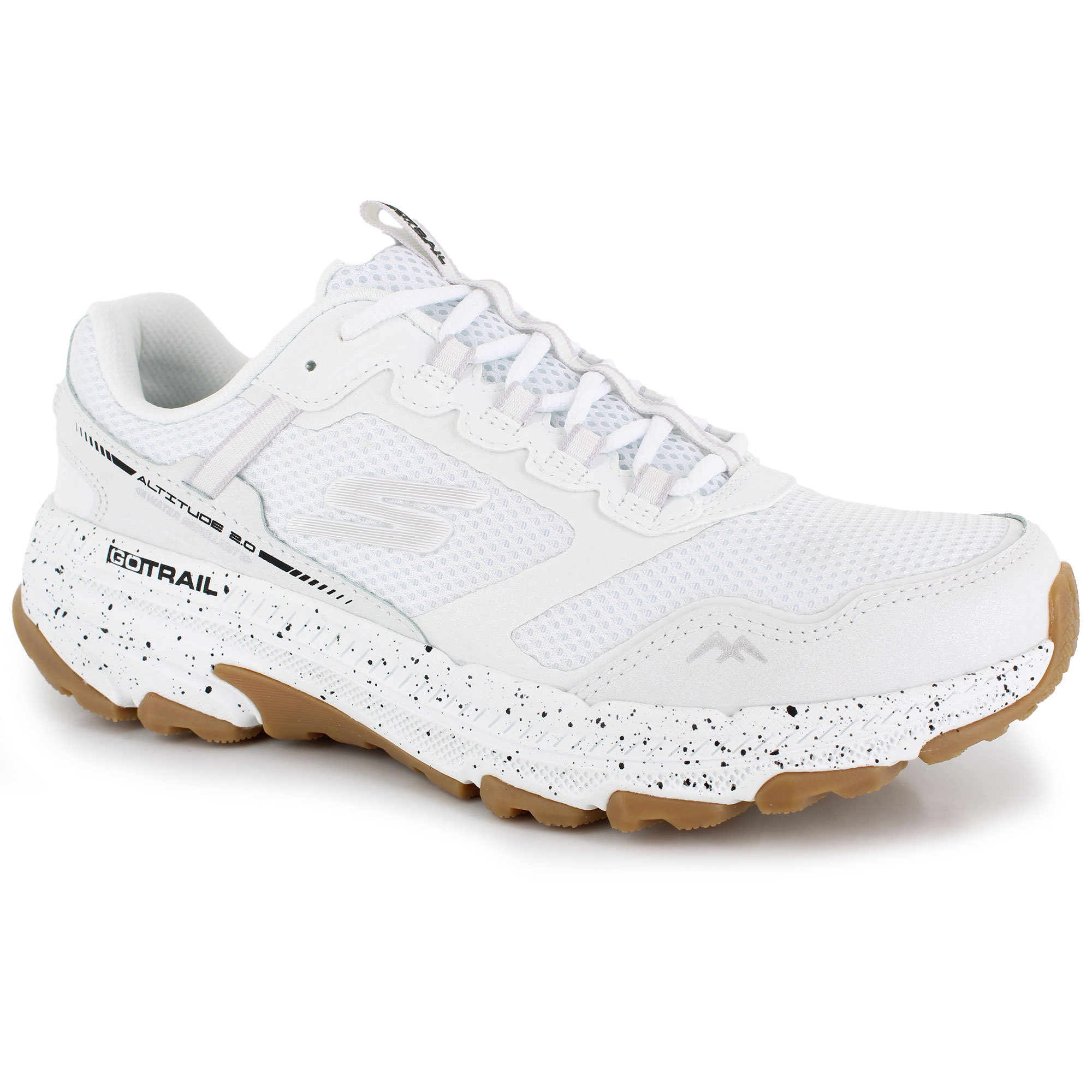 Unleash your inner adventurer with the Skechers GO RUN Trail Altitude 2.0 - Ravine. Designed for dynamic trail performance, these water-repellent running shoes feature a responsive ULTRA LIGHT midsole cushioning for superior comfort and agility. The durable leather and mesh fabric upper is complemented by a high-rebound, breathable Skechers Air-Cooled Goga Mat insole. Tackle any terrain with confidence thanks to the rugged outsole, boasting multi-directional traction lugs and a wider footprint for enhanced stability.