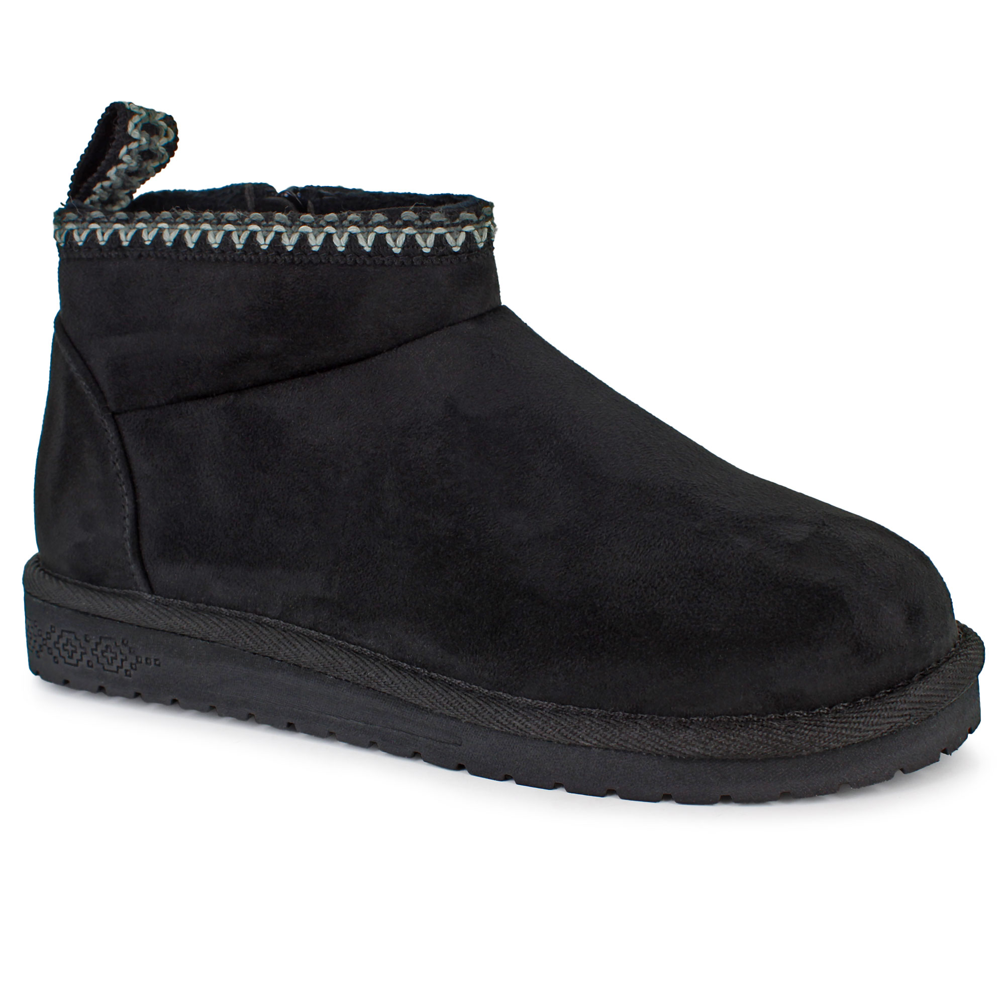 The Essentials by MUK LUKS Larissa boots are designed to keep you warm and cozy. Featuring a soft faux fur lining and a stylish suede shaft with detailed stitching, these boots are perfect for cooler weather. A convenient side-zip entry and a decorative pull tab on the back make them simple to slide on and off, so you can enjoy their comfort without any hassle.